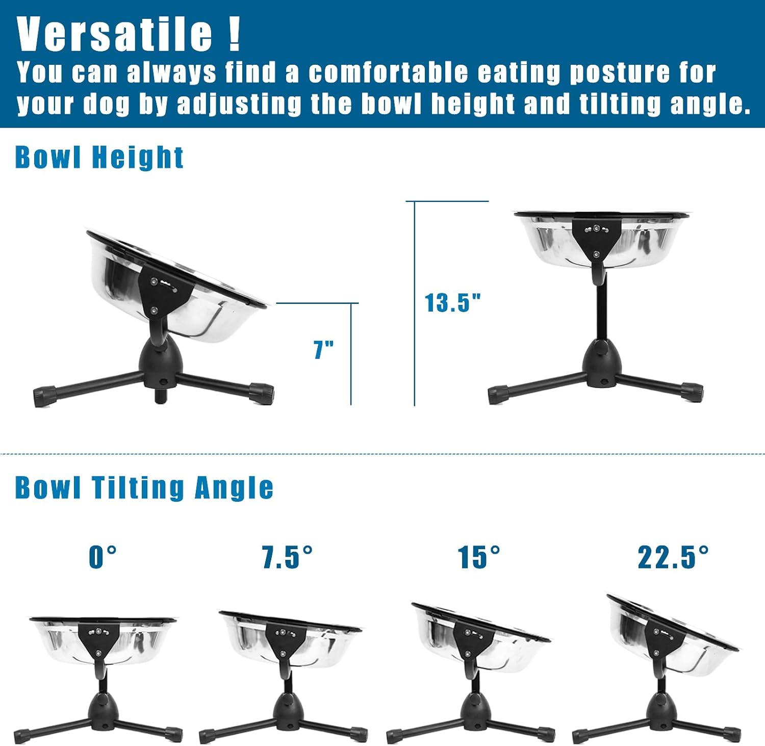 • 【Bowl Tilt Angles Adjustable】The tilt angle of this medium dog bowl can be 0°, 7.5°, 15°, and 22.5 °. This design is extremely helpful to promote digestion, reduce bloating, neck strain while feeding, and strain on joints. It is great for dogs with arthritis or mobility issues. This personalized dog bowl is good at use as water bowl for dogs as well.