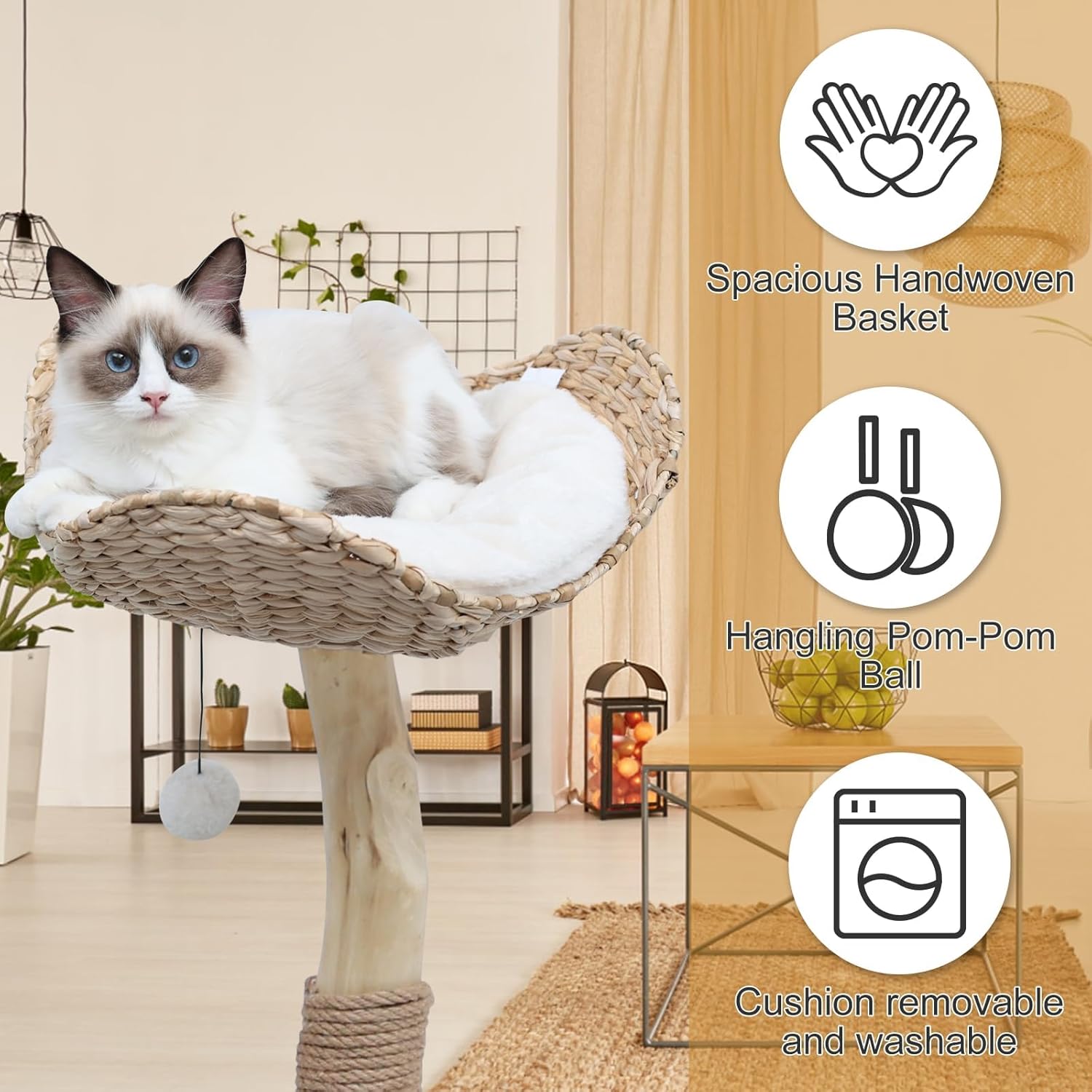 - 【 Designed For Your Cat】This real wood cat climbing tower gives your pet more space to play and lounge on. Our modern cat tower incorporates a cushioned space at the top, a flat resting area, and bottom is a cat sleep place, ideal for private space. The unique tree trunk cat tree also offers tightly woven scratch posts to indulge cats' natural wants for satisfying scratching instincts.