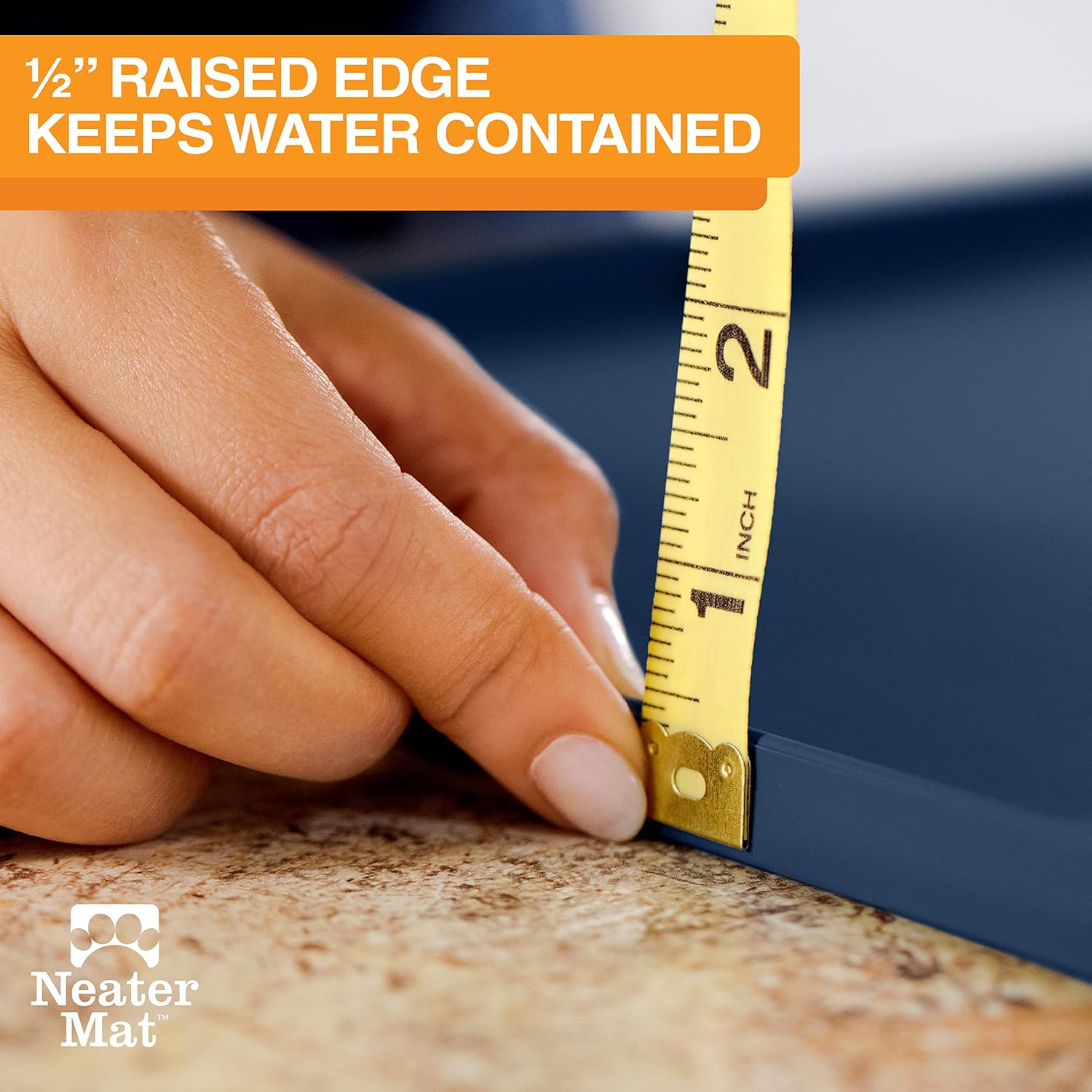 Neater Pet Brands Neater Mat Pet Mats for Food and Water, Cat & Dog Bowl Mat Waterproof Silicone, Feeding Tray, Dog Food Mats for Floors, Placemat w/Raised Edge for Under Bowls, 32" x 24", Dark Blue