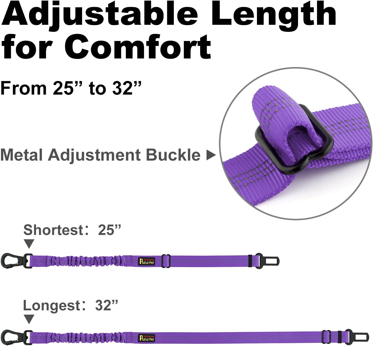 Plutus Pet Dog Seat Belt for Car, Adjustable Dog Car Harness with Carabiner Clip, Reflective Safety Dog Seatbelt Leash with Elastic Bungee, Purple