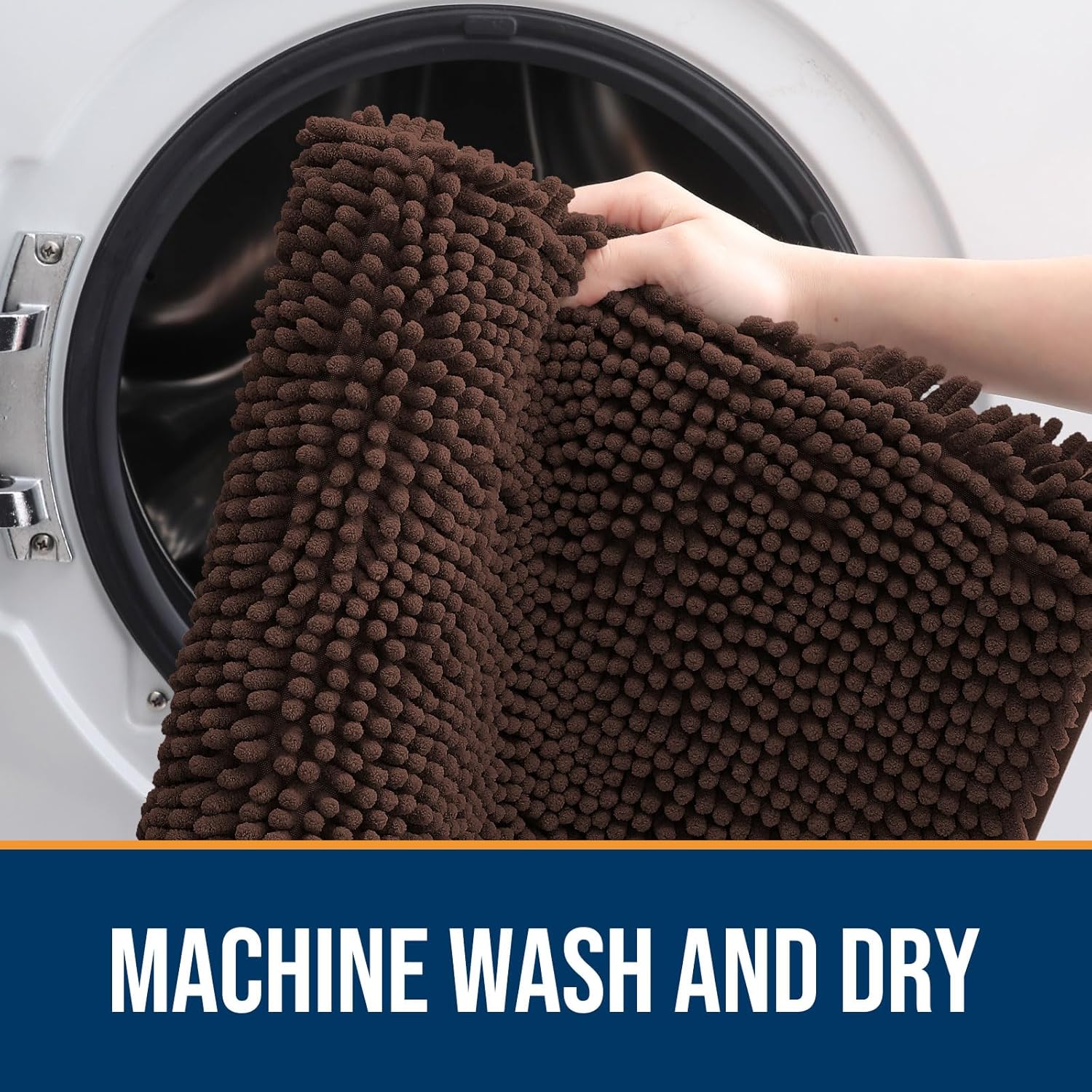 OLANLY Dog Door Mat for Muddy Paws 59x24, Absorbs Moisture and Dirt, Absorbent Non-Slip Washable Doormat, Quick Dry Chenille Mud Mat for Dogs, Entry Indoor Entryway Carpet for Inside Floor, Brown