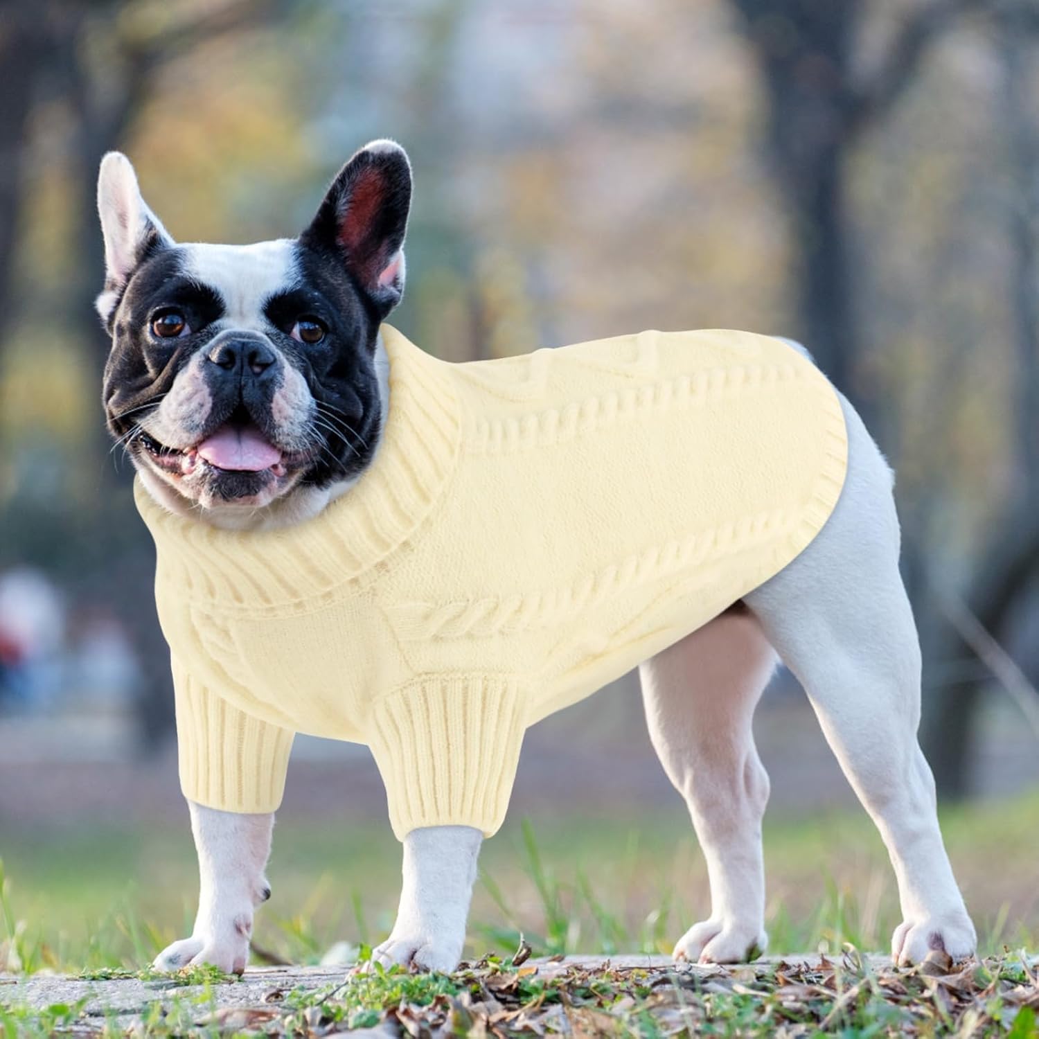 - THICK & WARM KNIT SWEATER: The dog's turtleneck large pullover chunky knitted sweater for large size dogs is made of high density acrylic yarn that is comfortable, ultra-soft, warm and easy to care. The cable knit sweater for extra large dogs is the cute winter clothes for your big dogs.