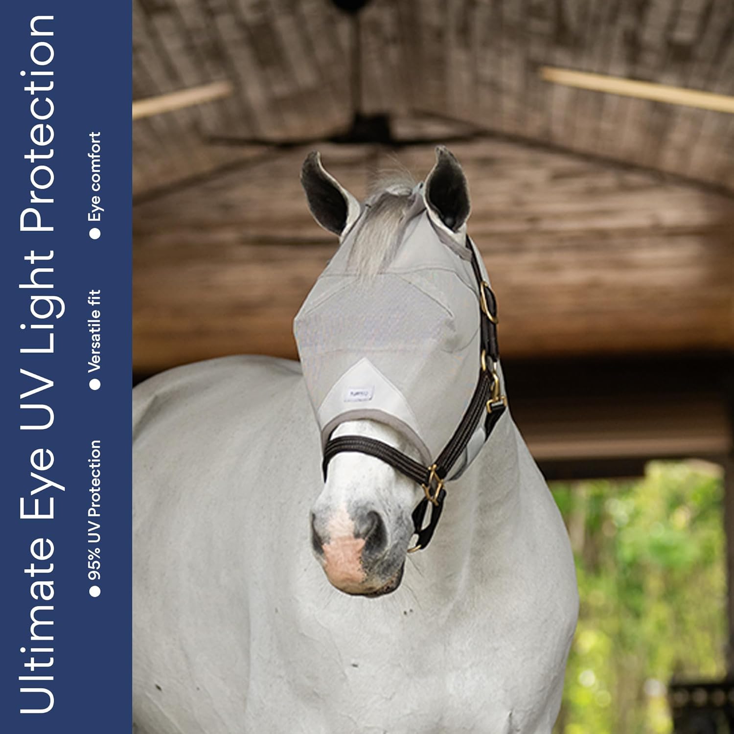 Horse Fly Mask Without Ears | 95% UV Eye Protection | Built-in Visor | Breathable, Lightweight Mask | Adjustable Fit for Horses Medium/Large Size
