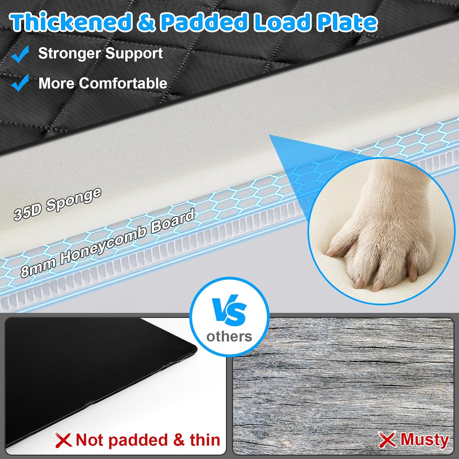 • Ultimate Comfort: Equipped with 8-layer protection including a layer of 35D sponge, this hard bottom dog seat cover delivers excellent comfort for pets during long rides. Compared to the competitor's single-layer thin board design, our padded hard bottom greatly reduces your dogs' joint pressure, while the non-woven fabric layer ensures durability and effortless removal for deep cleaning of the dog car seat cover