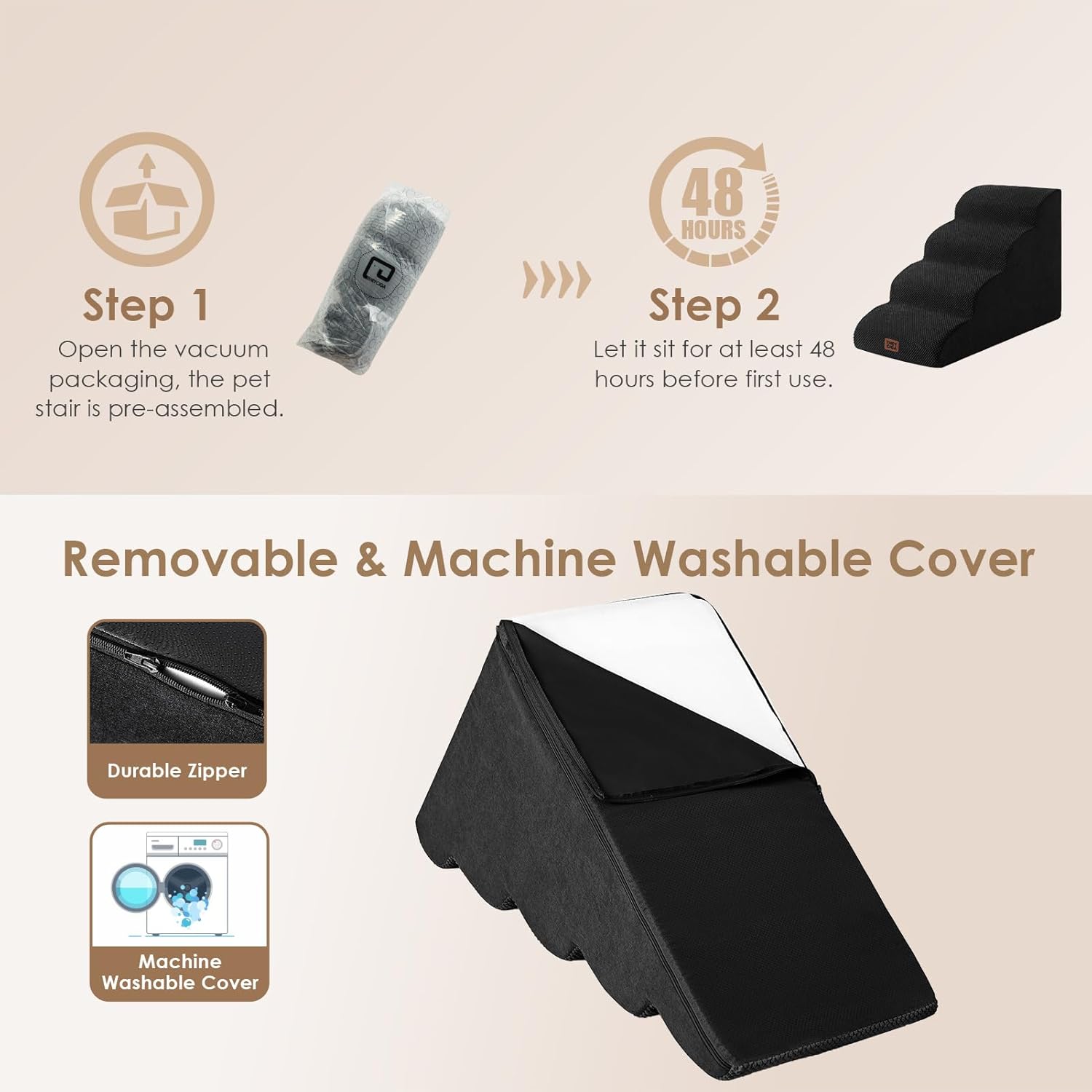 • COMFORTABLE PET STAIRS - This foam dog stair is designed directly against the edge of a bed, sofa or other furniture, so your pet can climb up and down comfortably.