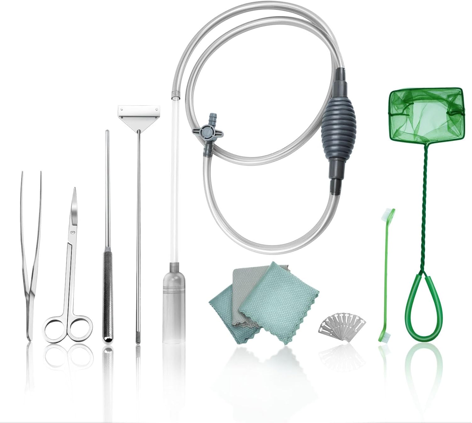 • Complete Cleaning Kit: Our aquarium siphon kit includes essential items like an aquarium vacuum gravel cleaner,aquarium algae scraper,scissors,tweezers and so on, catering to all your aquarium maintenance needs. Perfect aquarium starter kit