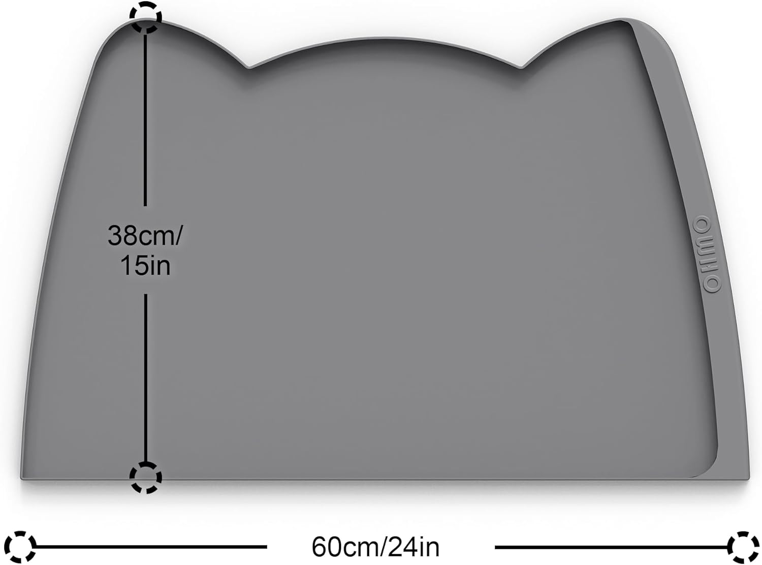 OHMO Dog Food Mat(Dark Grey, 24 * 15'') w/Residue Collection Pocket Silicone Pet Feeding Mat for Floor High Edges Anti Spills Waterproof Cat Water Bowl Tray, Easy Clean Placemat