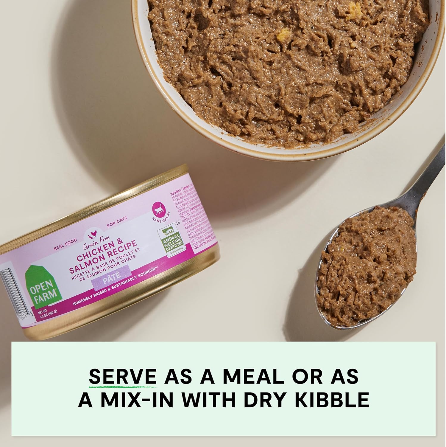 Open Farm Canned Cat Food, Paté for Complete & Balanced Nutrition, Grain-Free and Legume-Free Wet Cat Food, Chicken & Salmon Recipe, 2.8oz Cans (Case of 18)