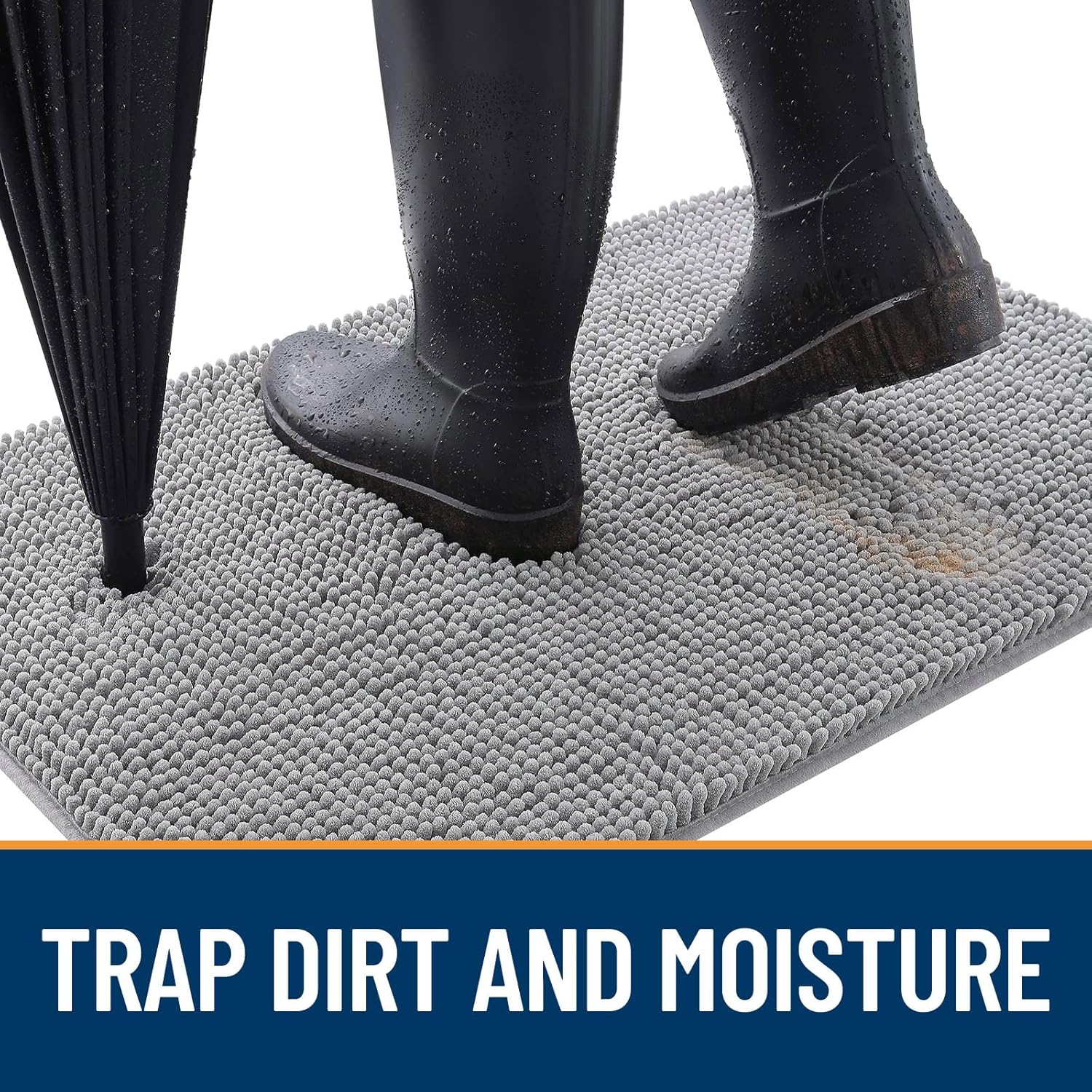 OLANLY Dog Door Mat for Muddy Paws 36x24, Absorbs Moisture and Dirt, Absorbent Non-Slip Washable Doormat, Quick Dry Chenille Mud Mat for Dogs, Entry Indoor Entryway Carpet for Inside Floor, Light Grey