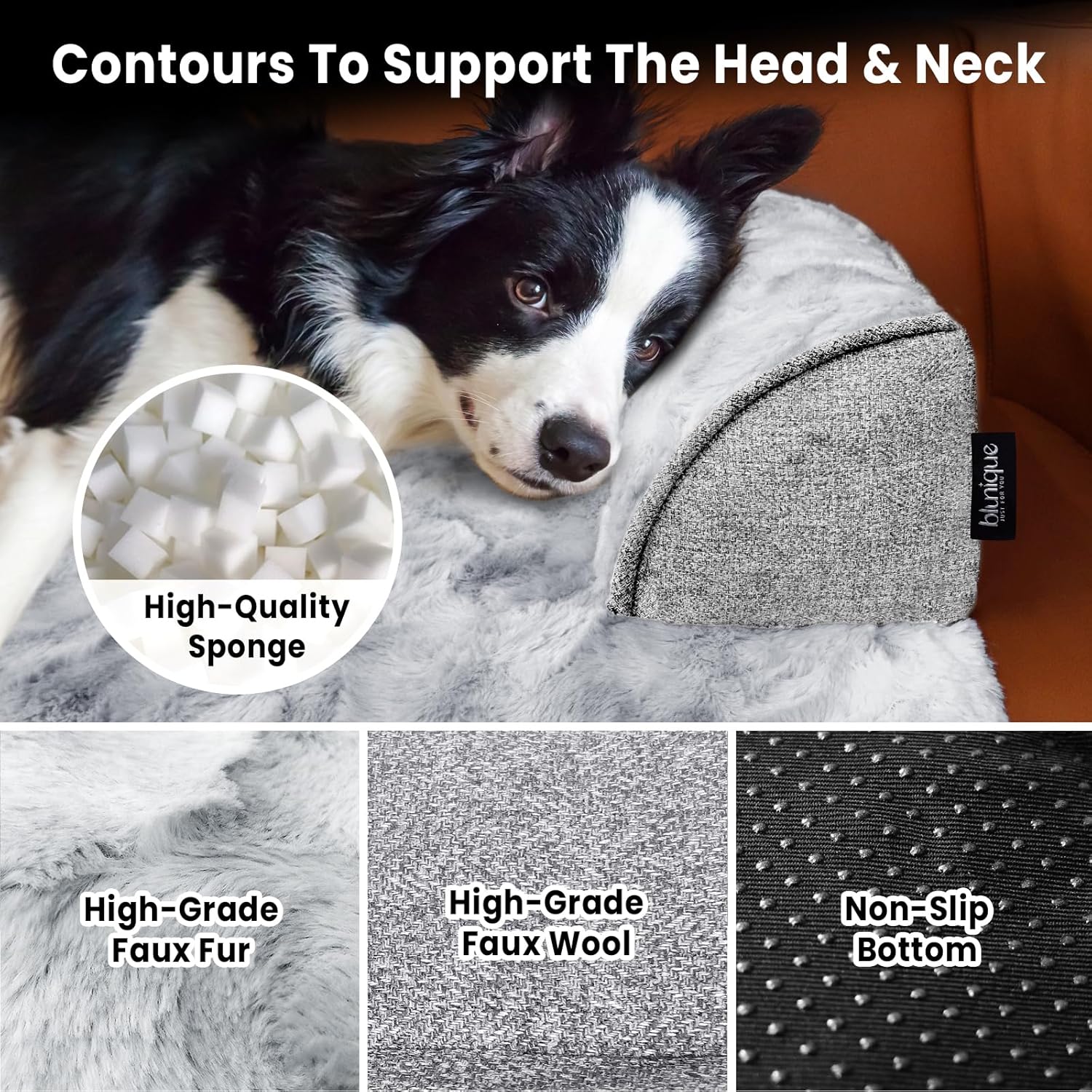 • π‘ͺπ’π’›π’š 𝒂𝒏𝒅 π‘Ήπ’†π’‚π’π’Šπ’”π’•π’Šπ’„ 𝑭𝒂𝒖𝒙 𝑭𝒖𝒓: Snuggle in style with blunique faux fur memory foam dog bed for couch, made with high-quality faux fur that mimics the soft, natural feel of real fur. Designed for pure relaxation, your pet can sink into the soft, plush embrace of the bed and experience true bliss, every time they lie down.