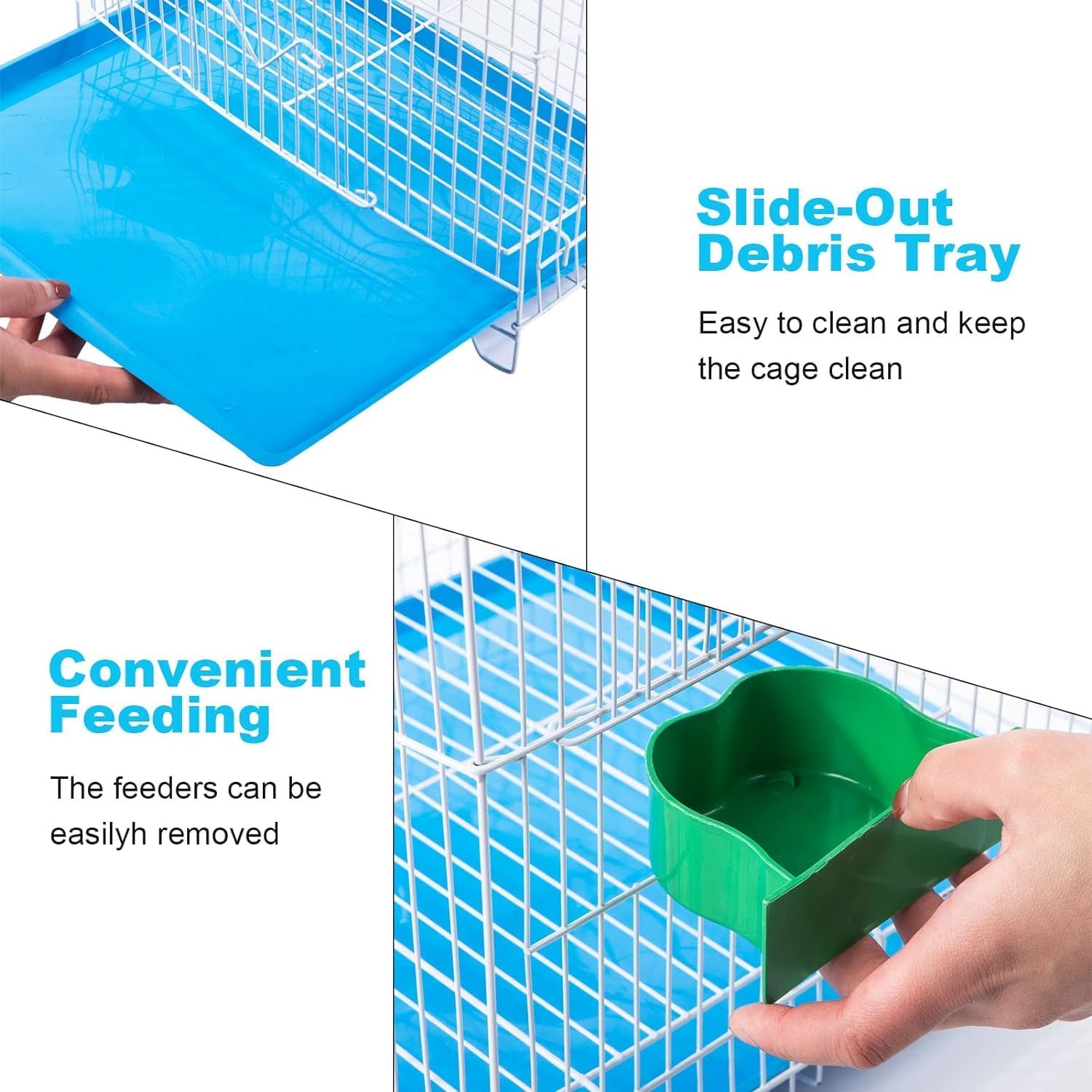 • EASY TO CLEAN : A slide-out tray covered can be removed and cleaned with water, making cleaning a breeze.Hanging bird cage comes with metal hooks, it can hang bird cages on trees, under eaves, on ropes, etc