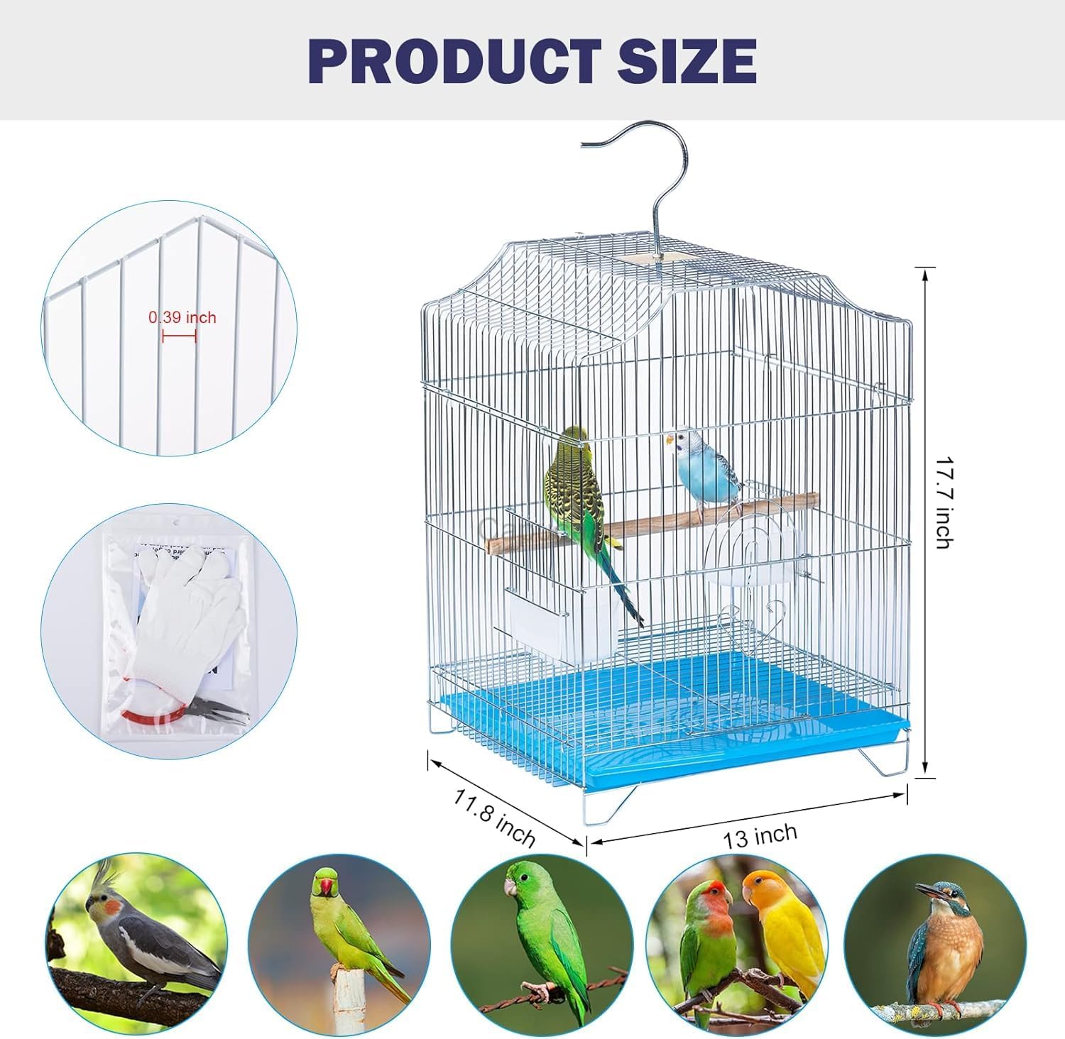 • MEASUREMENTS : Birdcage 13” (W) x 11.8” (D) x 17.7” (H) ; Perfect for suitabe for conures, lories, quakers, cockatiels, lovebirds, finch, green cheek, lories, doves and other small parrots