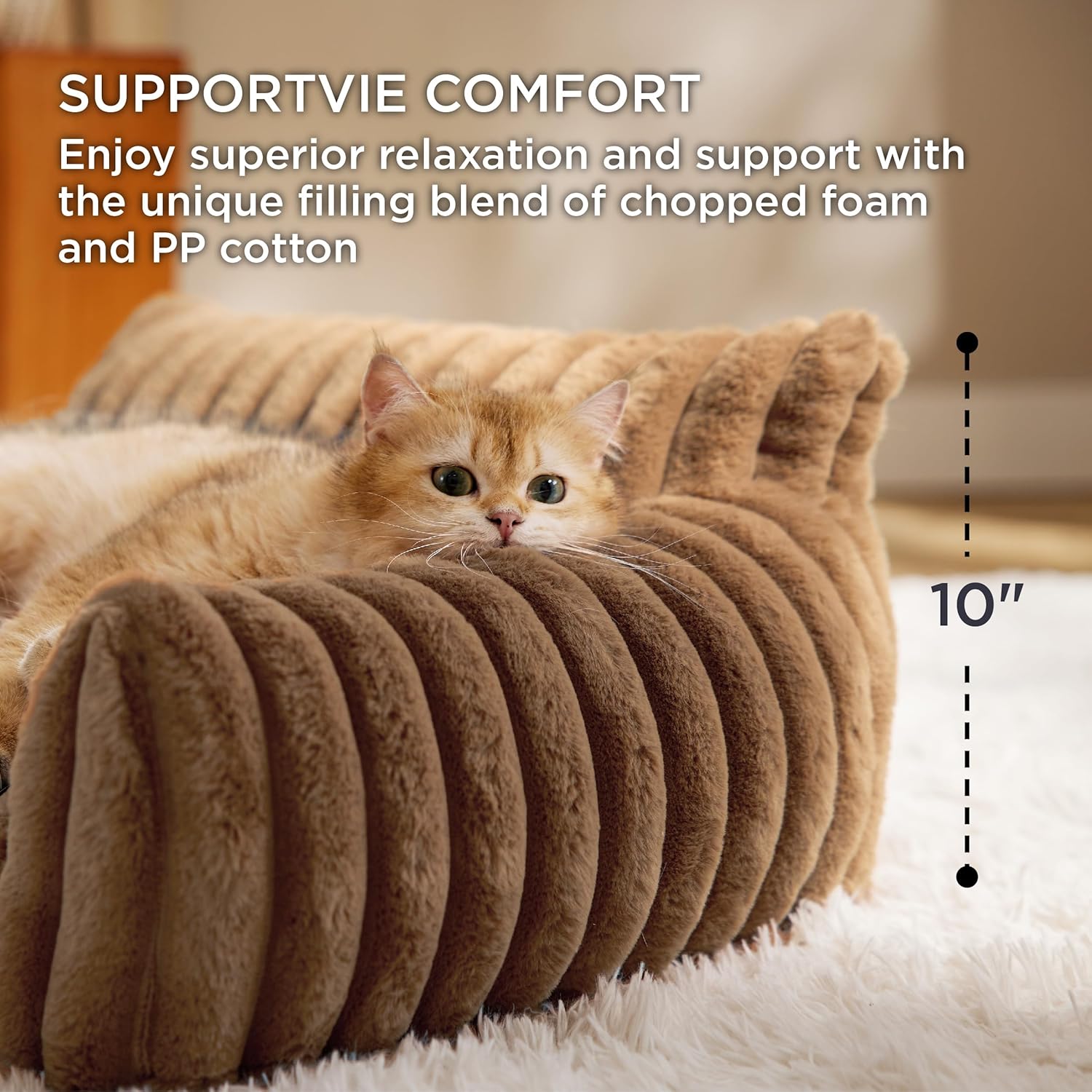 Bedsure Cute Cat Couch for Pets - Fluffy Cat Sofa with Premium Soft Corduroy Fleece, Fuzzy Pet Couch Bed with Removable Washable Cover, Supportive Pet Chair for Indoor Cats, 24inch, Copper Brown