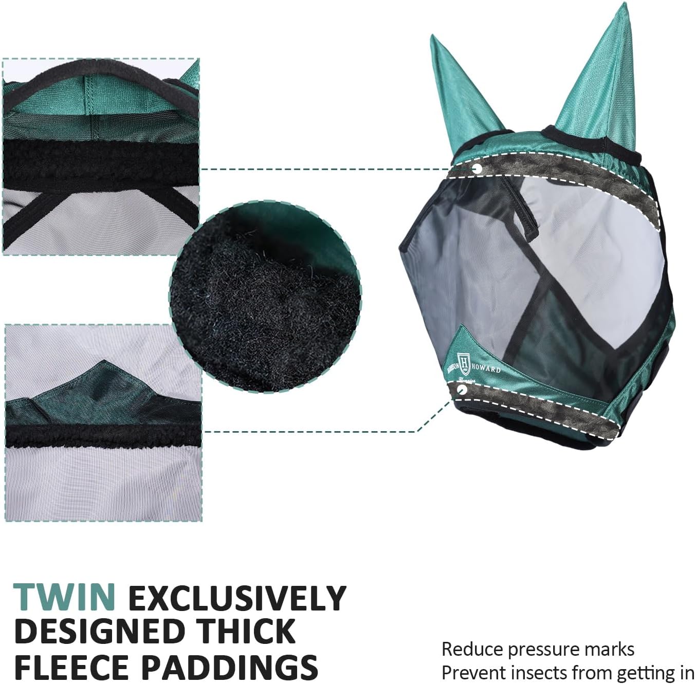 • Thick Fleece Padding: Fleece padding along the seams on the inner forehead and nose eliminates rubbing (does not rub your horse's hair), as well as reduces gaps and minimizes pressure marks.