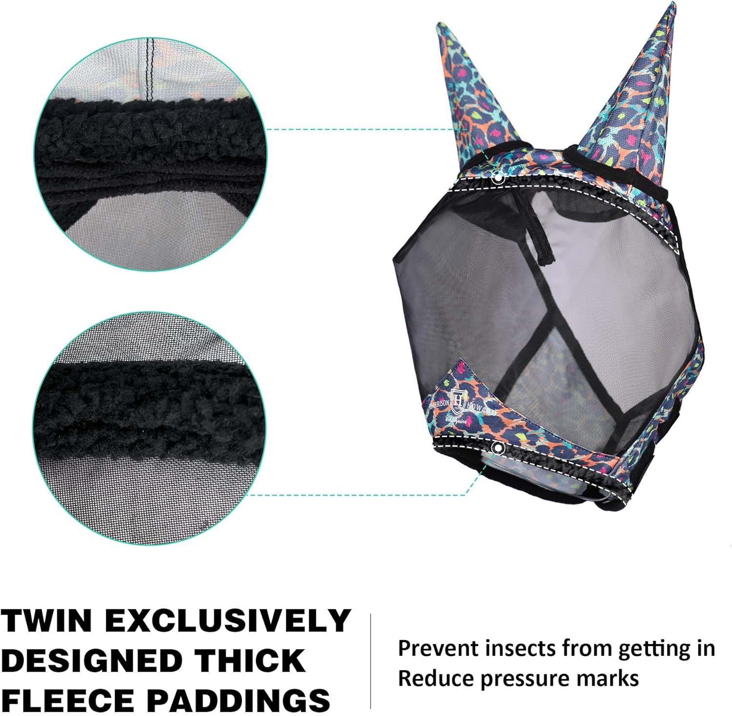 • Lightweight, Multi-Function Fabrics: Ultra-fine, ventilating, and long-lasting nylon mesh offers reliable UV protection for your horse's skin, it effectively prevents sun damage and bleaching. Quality edging along the nose cover enhances durability.