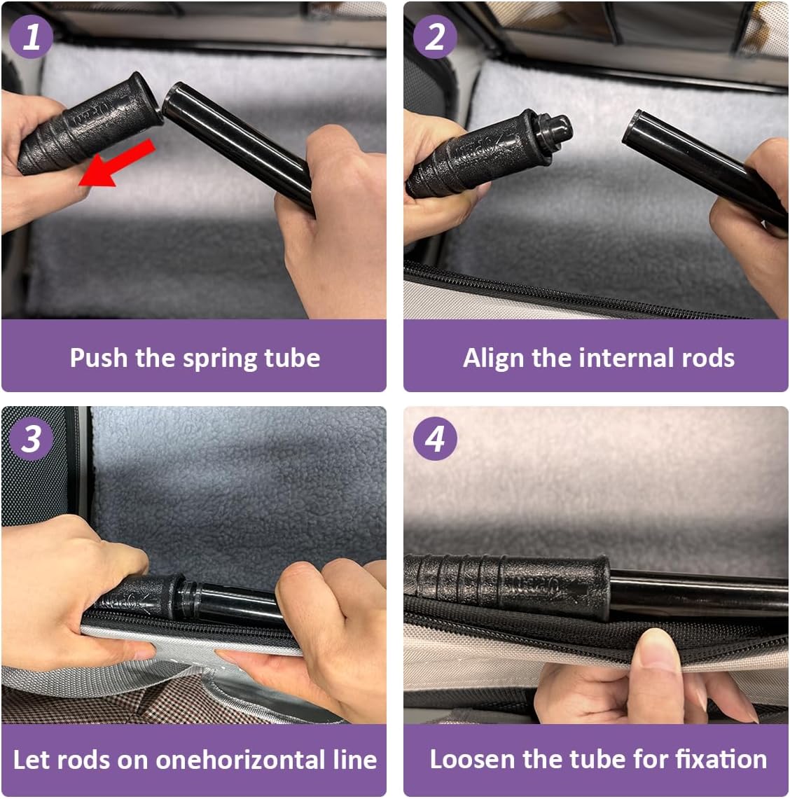 • SAFETY DESIGN- Each access has a zipper lock to prevent cats from escaping. On the side have seatbelt loops, can fix the carrier in the car. The internal metal support structure may also provide good protection for pets.