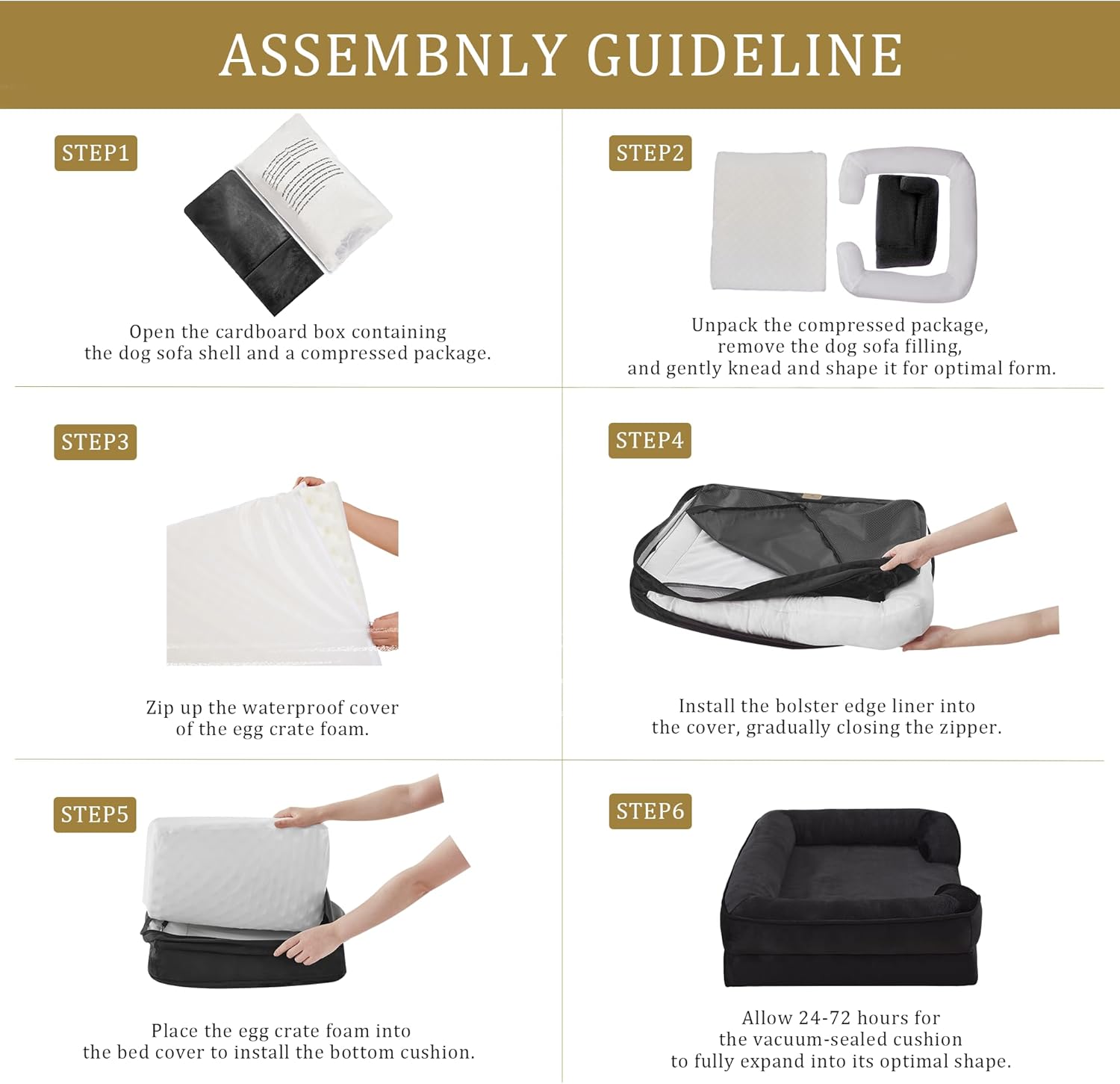 Bedfolks Orthopedic Dog Bed XL, Waterproof Dog Sofa Bed for Extra Large Dogs, Egg Foam Pet Couch Bed with Removable Washable Cover and Nonslip Bottom, Black