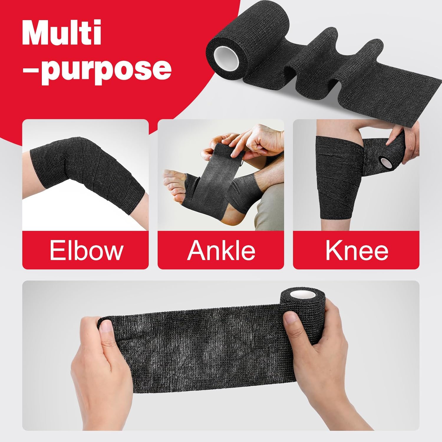 • Breathable & Highly Elastic Fabric: Self adhesive bandage wrap is made of special elastic lightweight compression bandage fabric, which is stretchy, breathable and skin-friendly