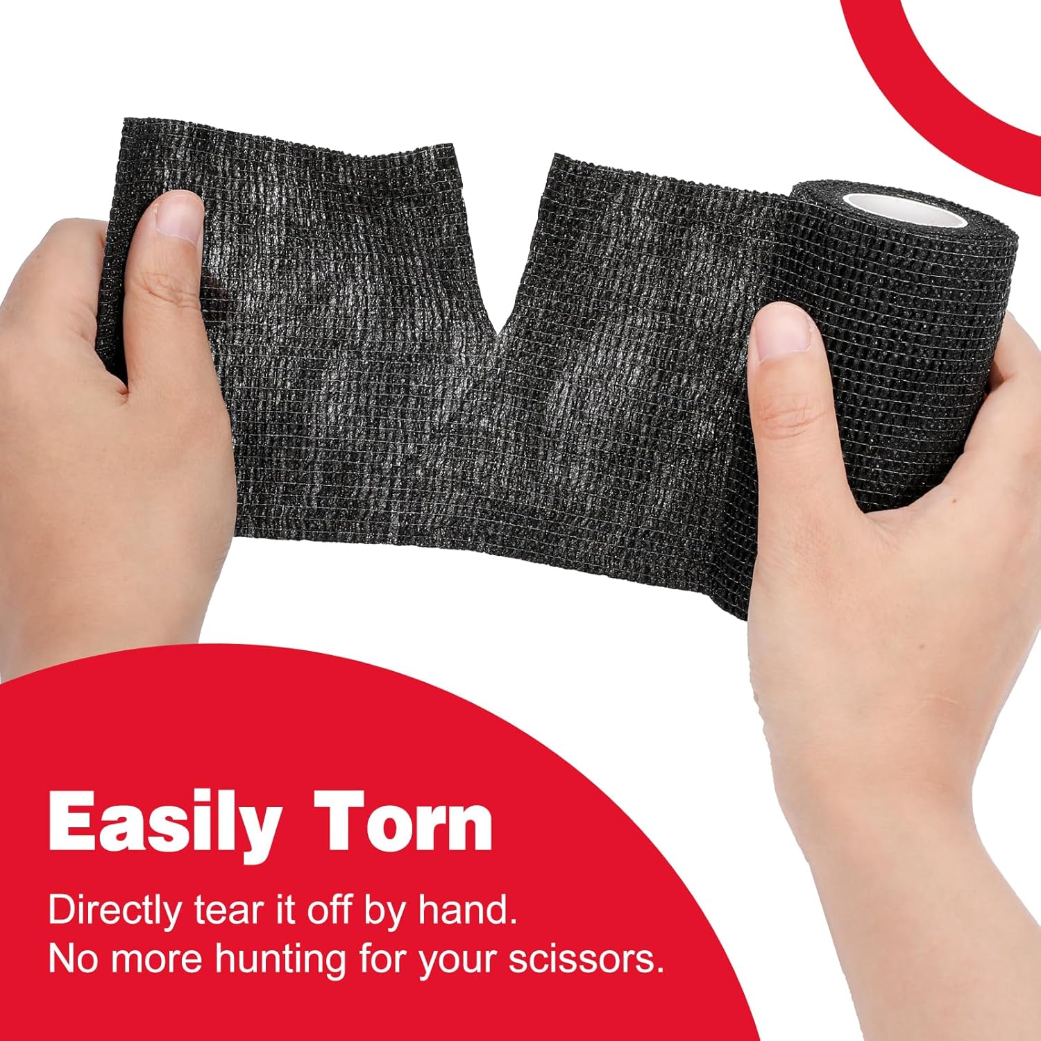 • Self Adhesive Bandage: Package includes 9 rolls of black self adhesive bandage wrap. Each roll measures 4 inch wide and 5 yards long after stretching. It easily adheres to itself but will not stick to other surfaces such as skin or hair, making it easy to pull off and change bandages