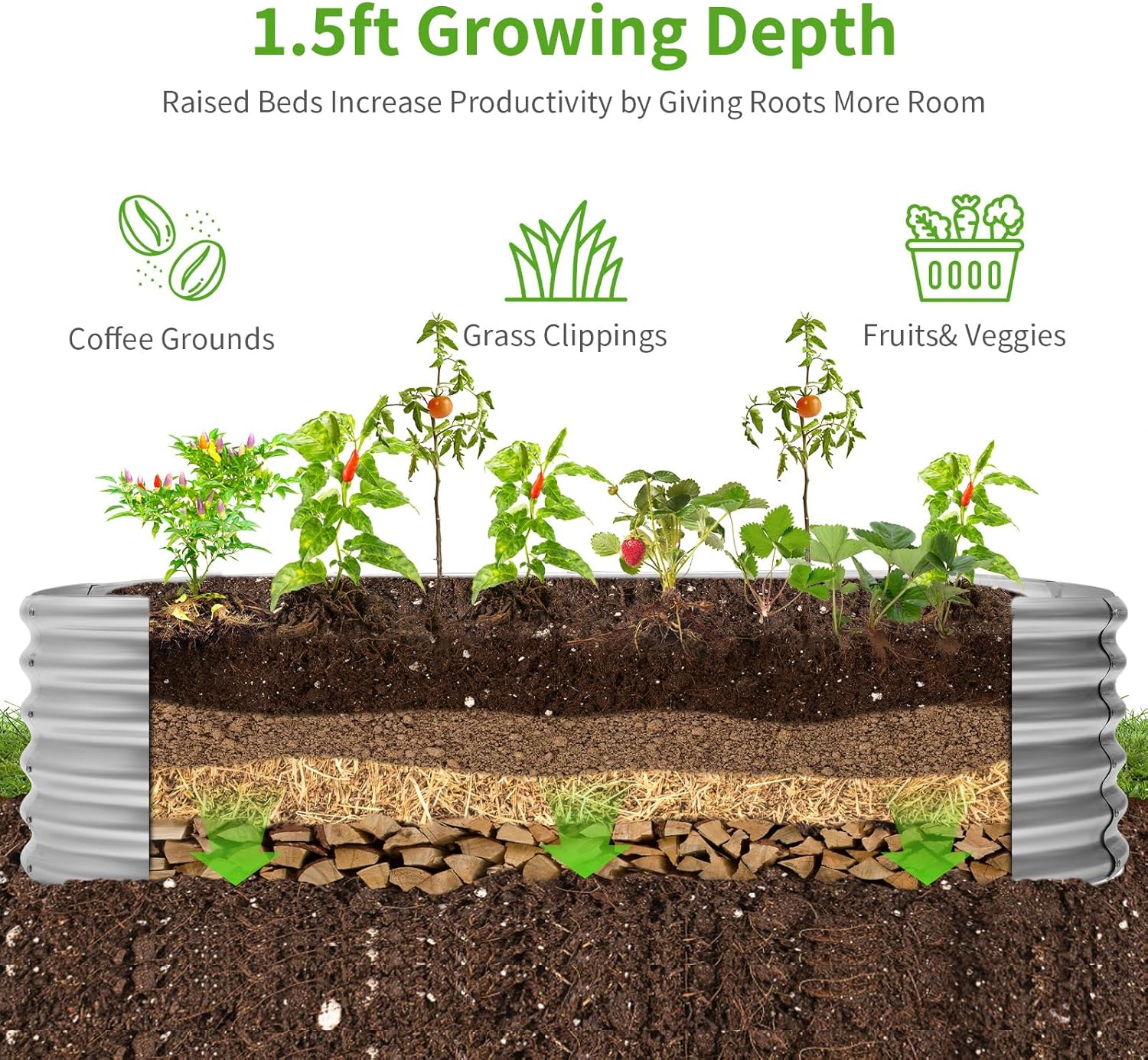 - Extra large capacity: The total dimensions of the raised garden bed are 96 "L x 48 "W x 18 "H and holds 359 gallons of soil. The extra large capacity provides plenty of growing space for planting vegetables, fruits, flowers and other plants.