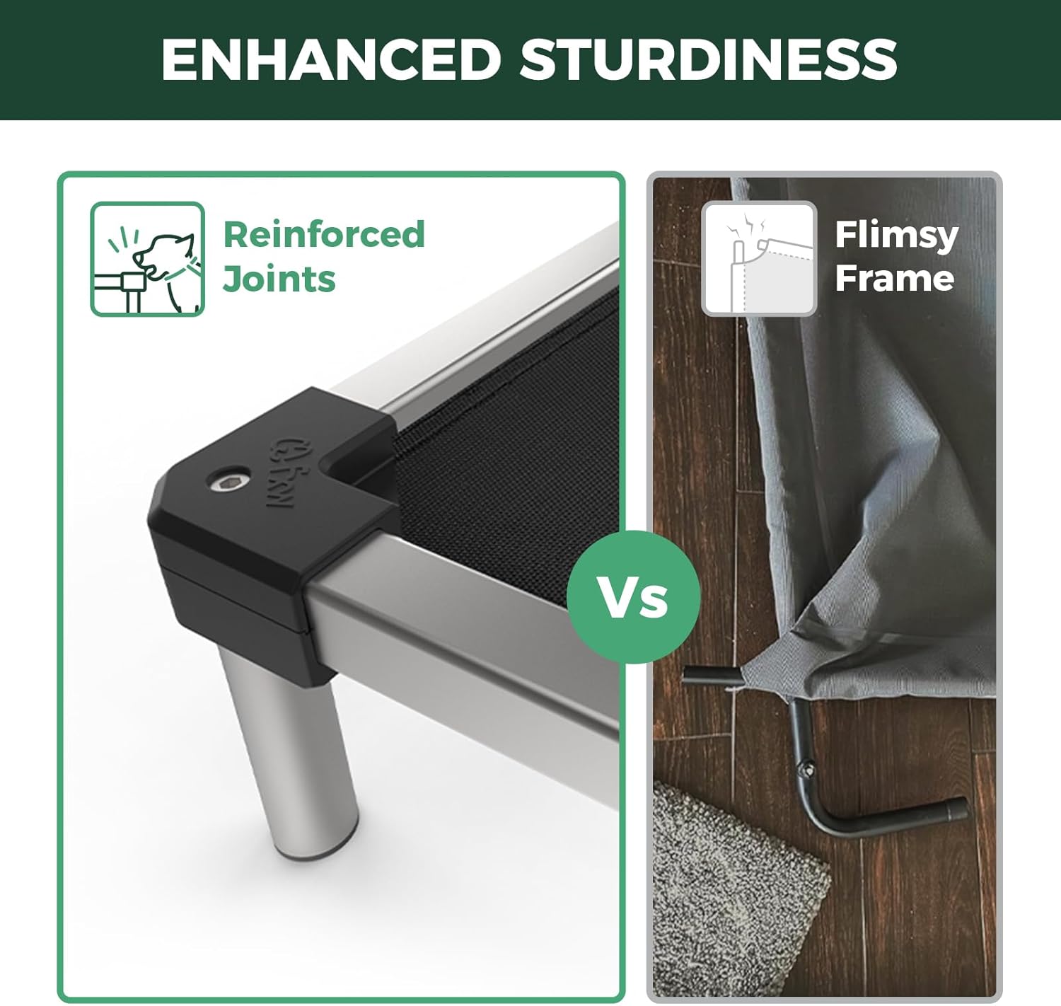 • Indestructible & Dog-Safe: Crafted with a premium aluminum alloy frame and chew-proof edges, this bed withstands aggressive chewers while keeping your pup’s gums safe and happy.