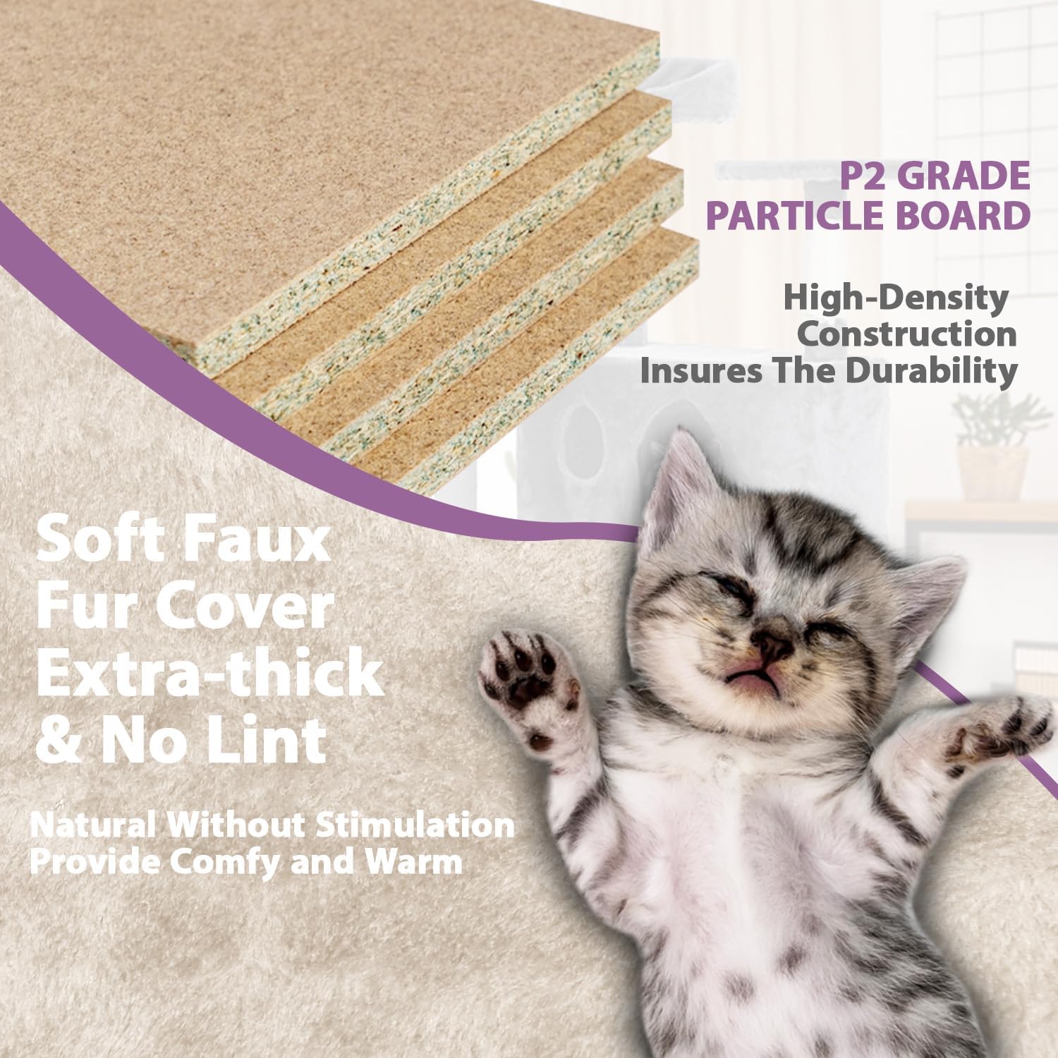- Sturdy & Durable:The Indoor Cat Climbing Shelf is made of high quality natural particle board, reinforced base, skin-friendly plush cover and natural sisal scratching post, designed to provide your cat with a sturdy, stable home entertainment center. With each platform and litter covered in soft plush fabric, your furry family member will love the soft touch of Big Cat Tree's plush and the sensation of exploring and sniffing around their new home.