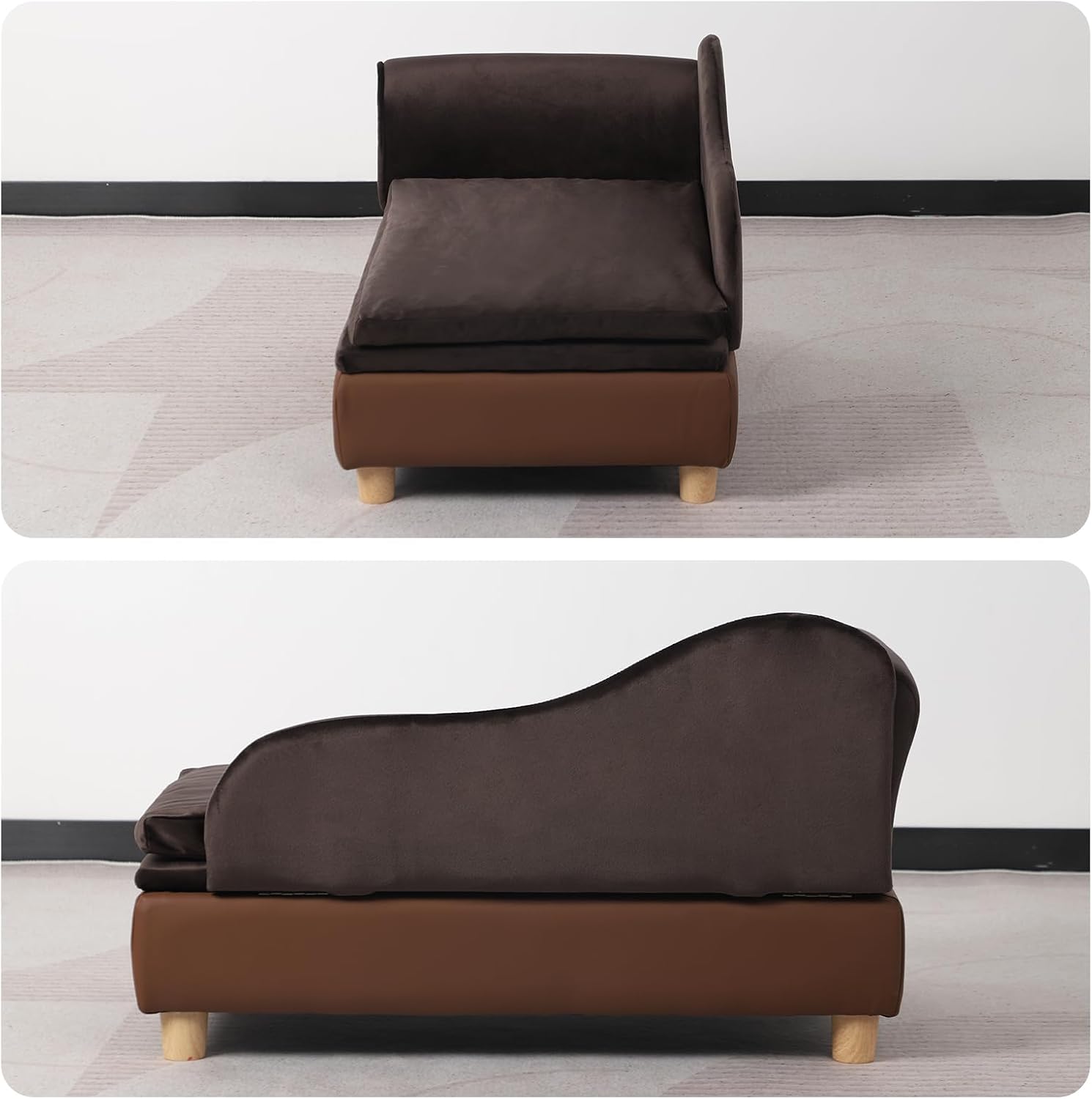 Pet Bed Sofa, Puppy Bed with Storage, Small Dog Couch with Removable & Washable Cushion, Comfy Pet Couch Bed for Cats & Puppy (Brown)