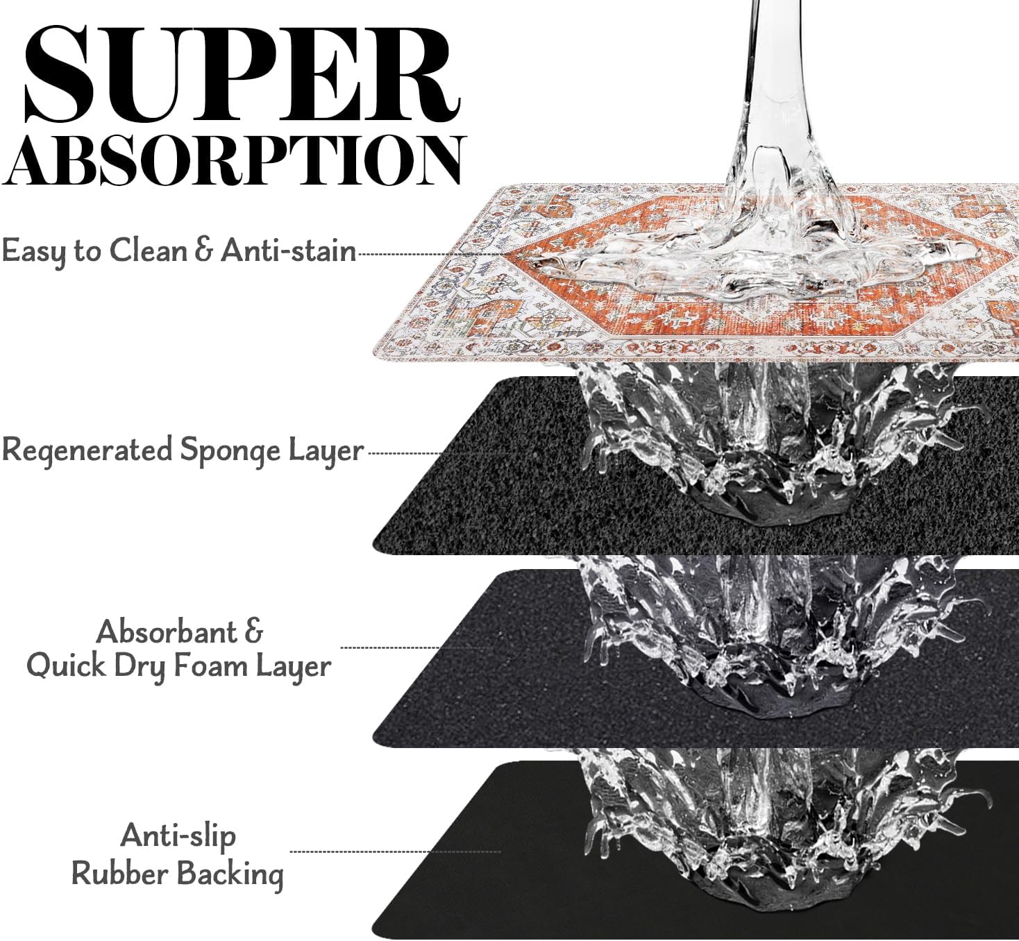 - Super Absorption: The dog mat for water bowl can absorb spilled water without leaving traces and dry quick, avoid wetting pet paws even for messy drinkers. And it does not attract pet hair like traditional silicone dog bowl mat.