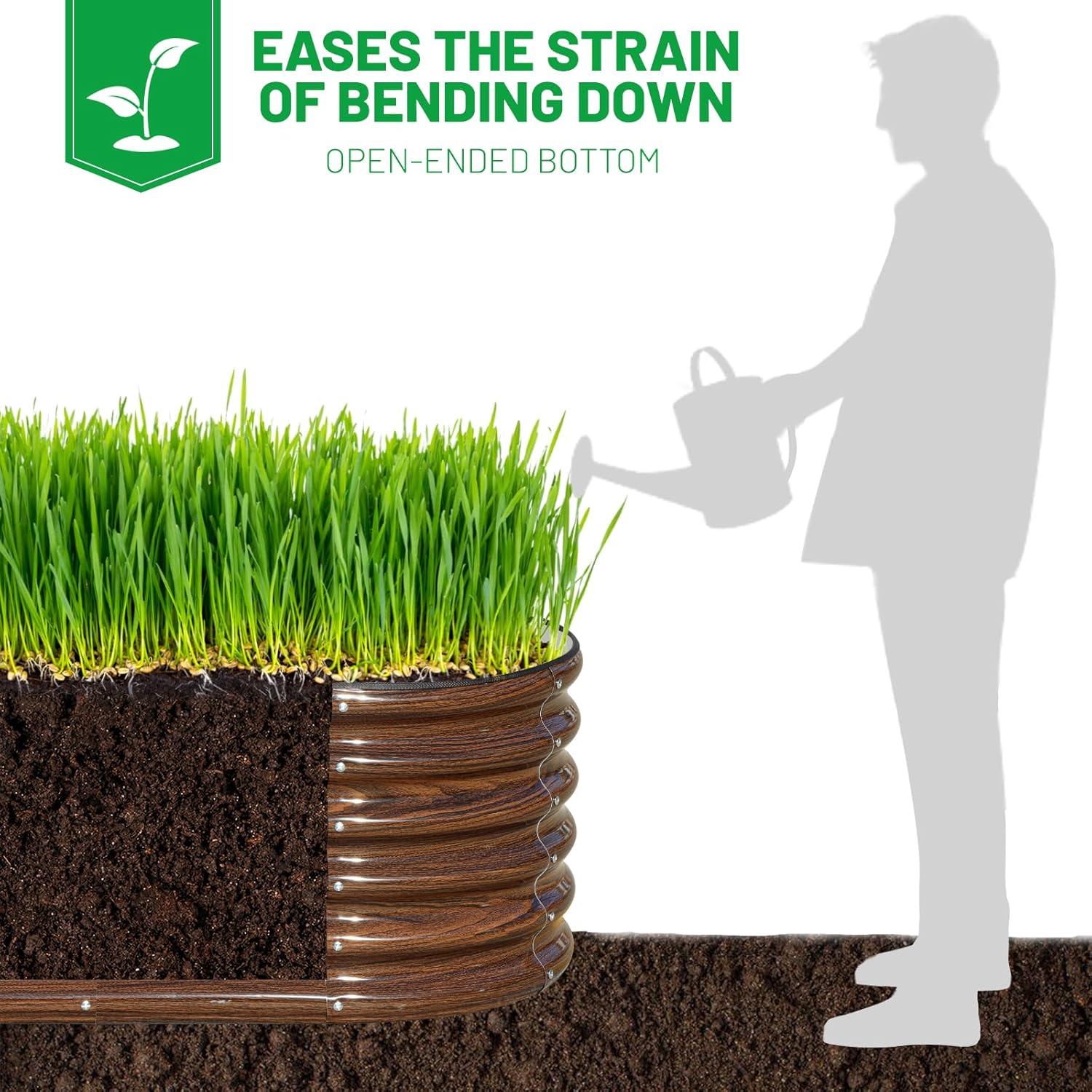 • Open Base: This planter raised bed is designed with an open base to prevent water accumulation and decay.