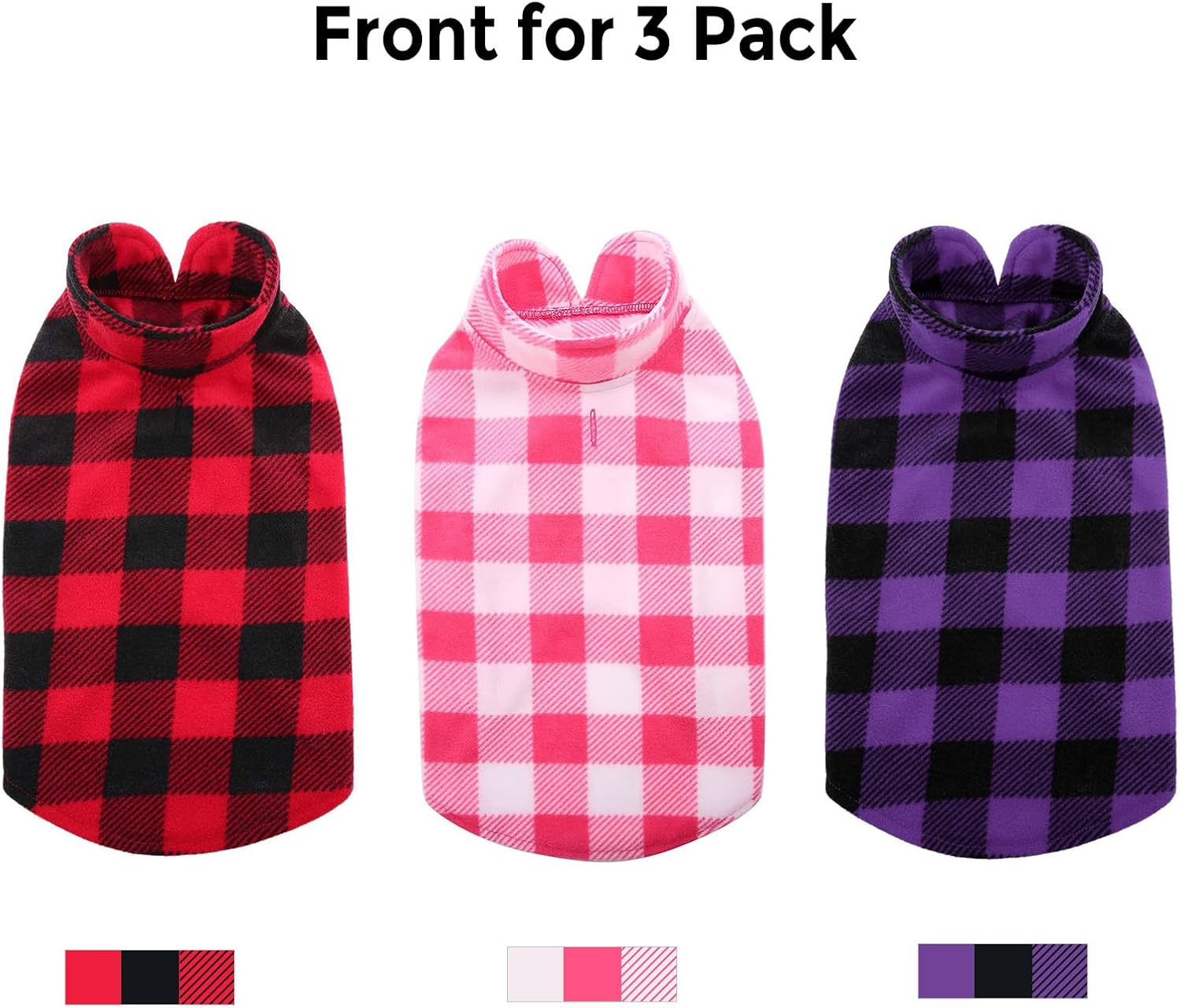 ASENKU Plaid Dog Fleece Vest, Soft Comfortable Pet Pajamas, Warm Winter Dog Shirt, Cold Weather Coat Jacket - 3 Pack Pet Clothes for Small & Medium Dogs