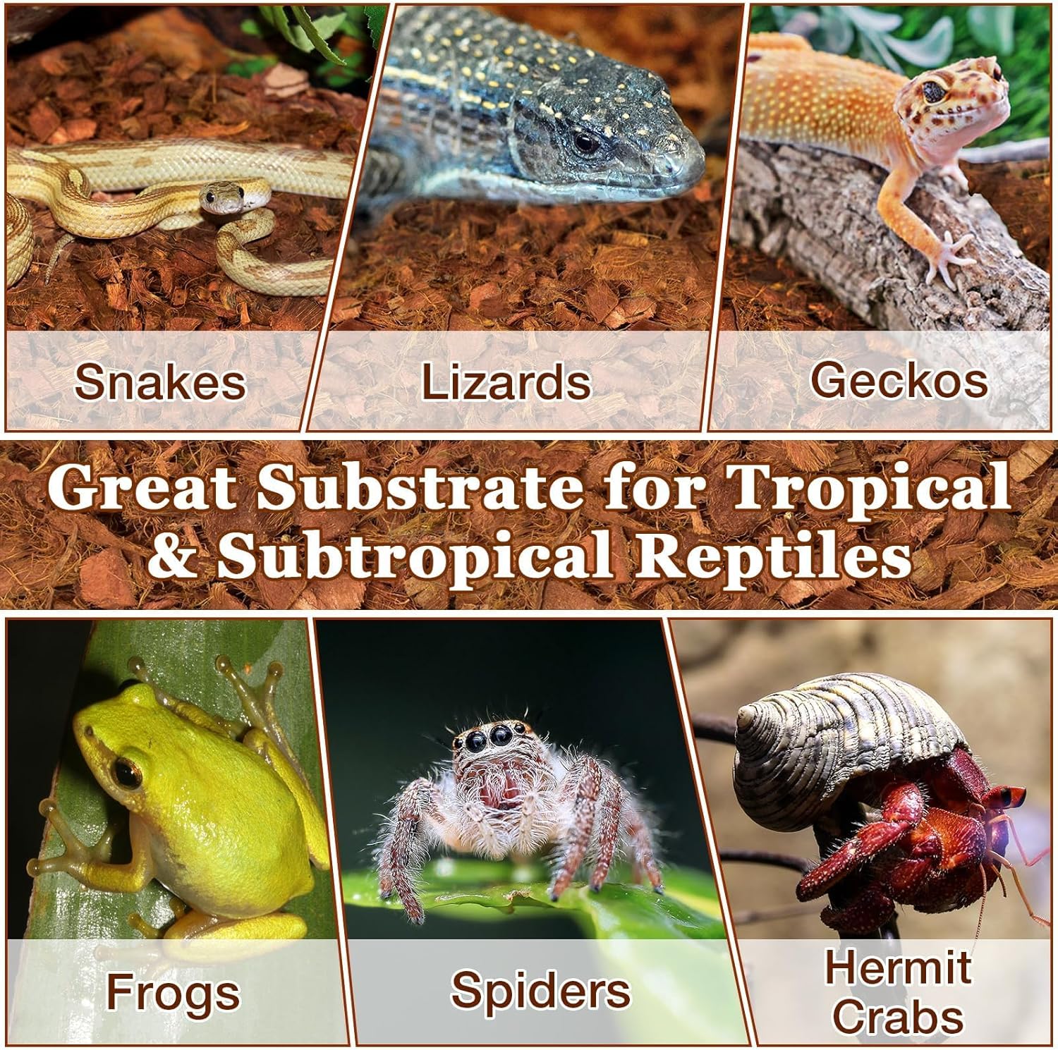 • ๐ŸŒฟ ๐๐š๐ญ๐ฎ๐ซ๐š๐ฅ ๐‚๐จ๐œ๐จ๐ง๐ฎ๐ญ ๐…๐ข๐›๐ž๐ซ ๐’๐ญ๐ซ๐ฎ๐œ๐ญ๐ฎ๐ซ๐ž: The reptile substrate is made from coconut husk, which is 100% natural, low EC value, dust-free and no odors. Each coconut chip retains its honeycomb cellular structure for superior aeration and humidity retention, ideal for ball pythons needing 70-80% humidity zones.
