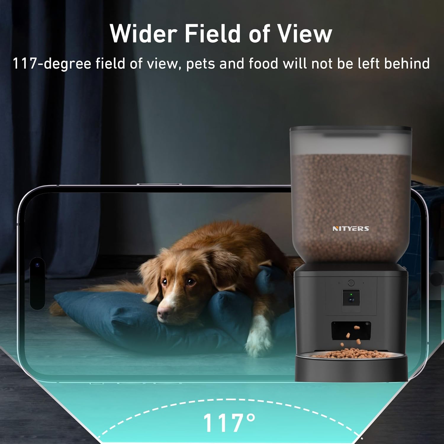 • Smart APP Control: Nityers automatic dog feeder is 5GHz and 2.4GHz WiFi-enabled, allowing you to program and monitor your pet's meals anywhere, anytime, through iOS and Android devices—with no subscription fee required. The app can also be shared with other family members so they can check on your pet too. With flexible feeding times and precise portion control, this cat automatic feeders help pets develop healthy dietary habits