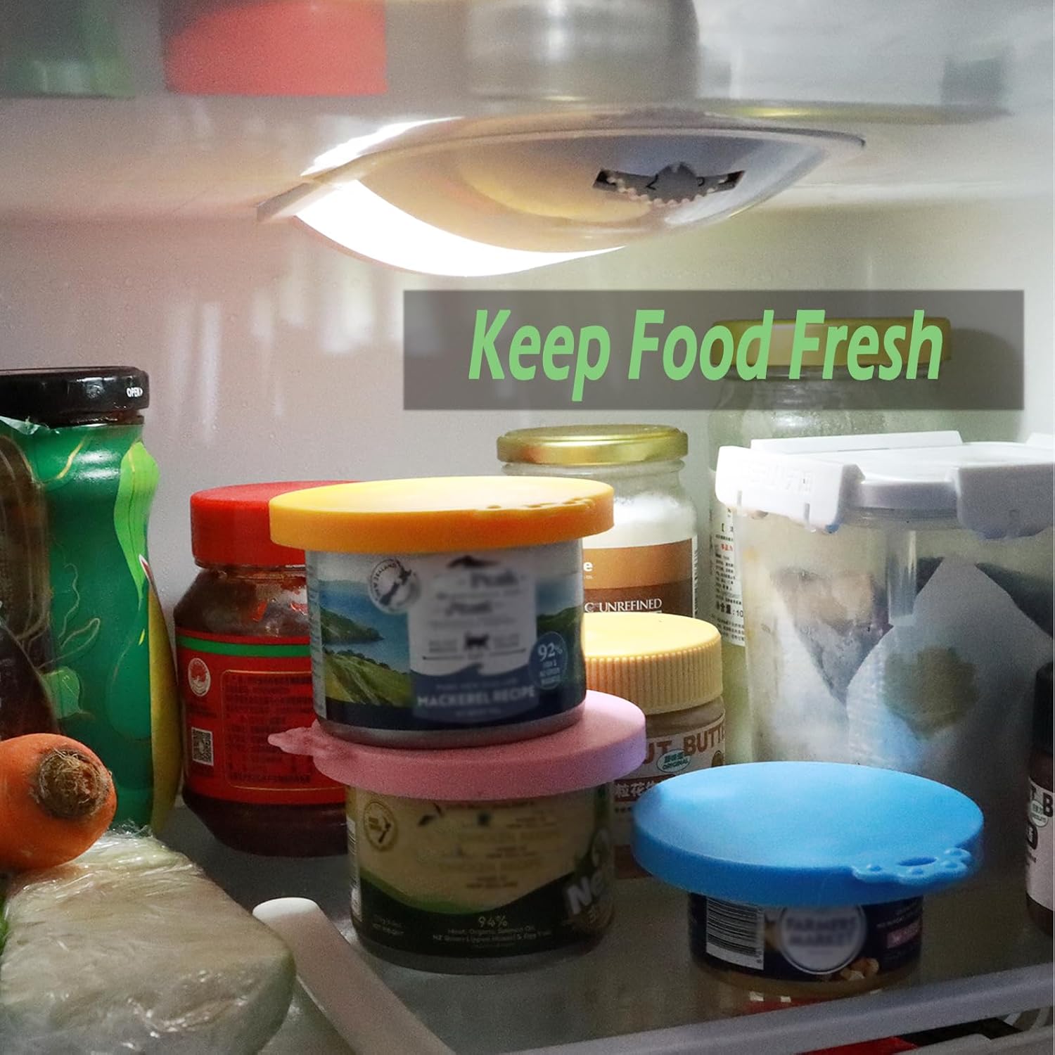 - COMFORTABLE LIVING: 4 different beautiful colors, easy for you to distinguish your food. The canning lid has a good air tightness to ensure the food is fresh and odorless in the refrigerator. Give your pet a set of their own tableware.