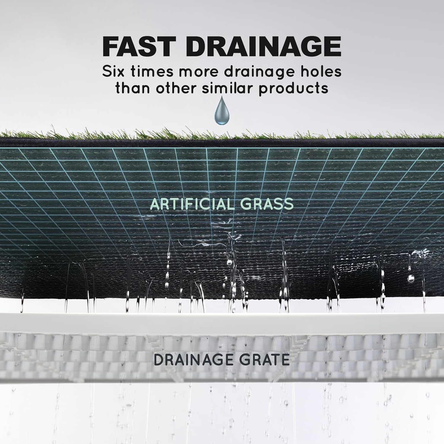 - DRAINAGE GRATE : Special designed drainage grate can separate the disposable pee pads from grass. Quick absorbency and much less stink