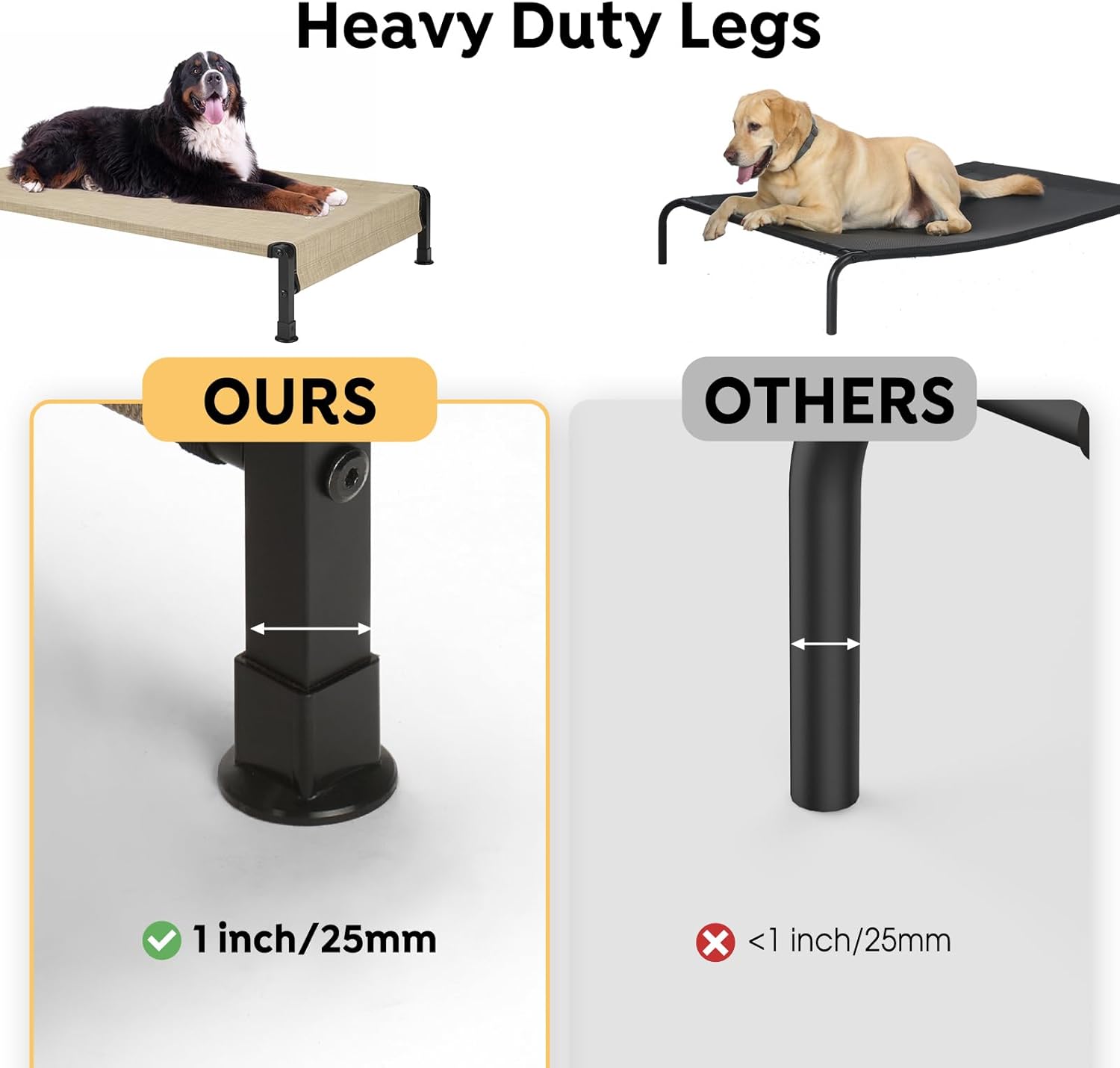 • Enhanced Durability: One Piece Tubing Sturdy Design resists bending, and the heavy-duty frame is thicker than other normal beds, ensuring lasting durability. With anti-slidding silicon feet, this elevated pet bed offers superior stability, making it a safe and reliable choice for even the most active pets.