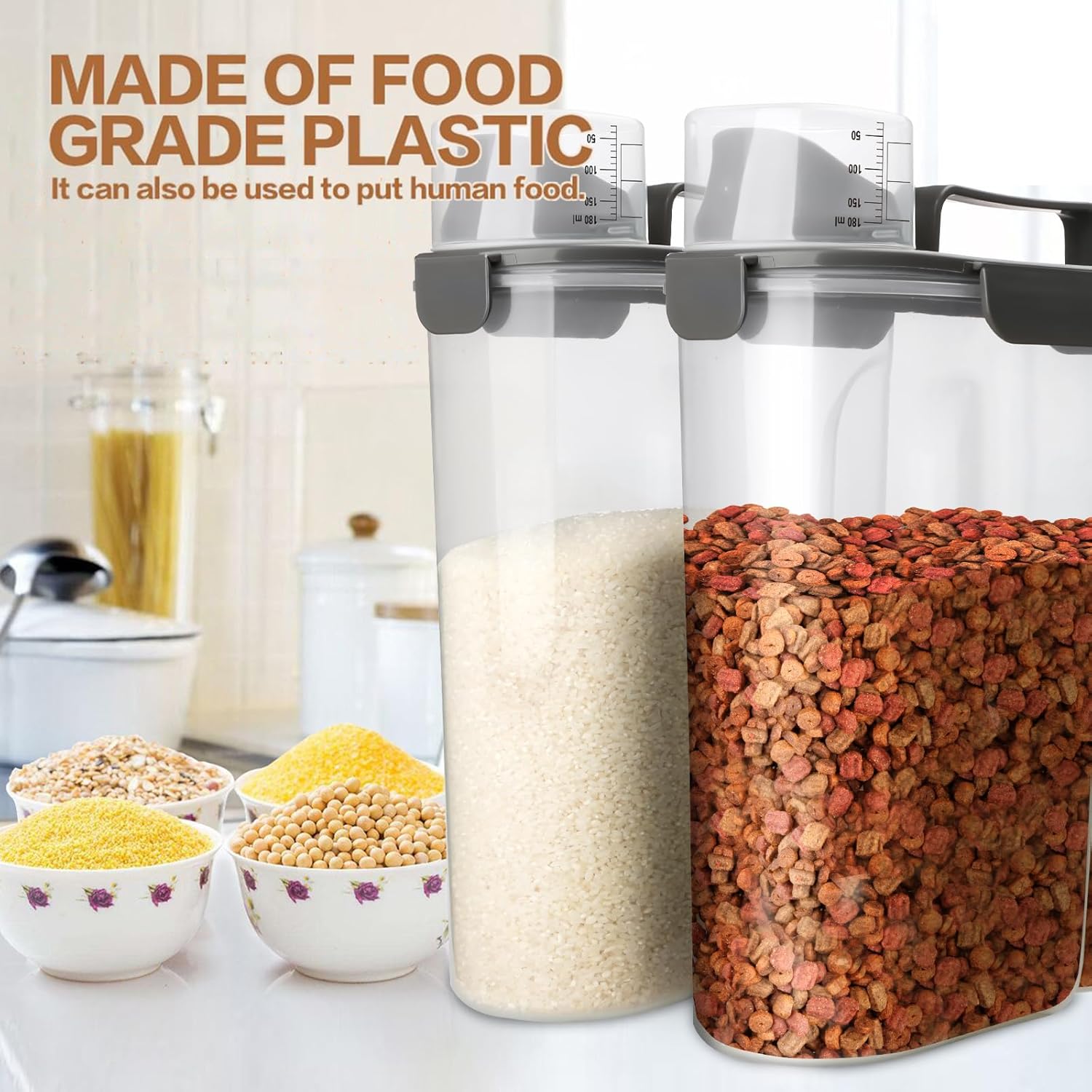 Dog Food Storage Container, 5-7 Lbs Airtight Pet Food Container, Cat Food Container Dispenser with Portable Handle, Pouring Spout and 4 Seal Buckles for Dogs Cats 2 Pack Grey