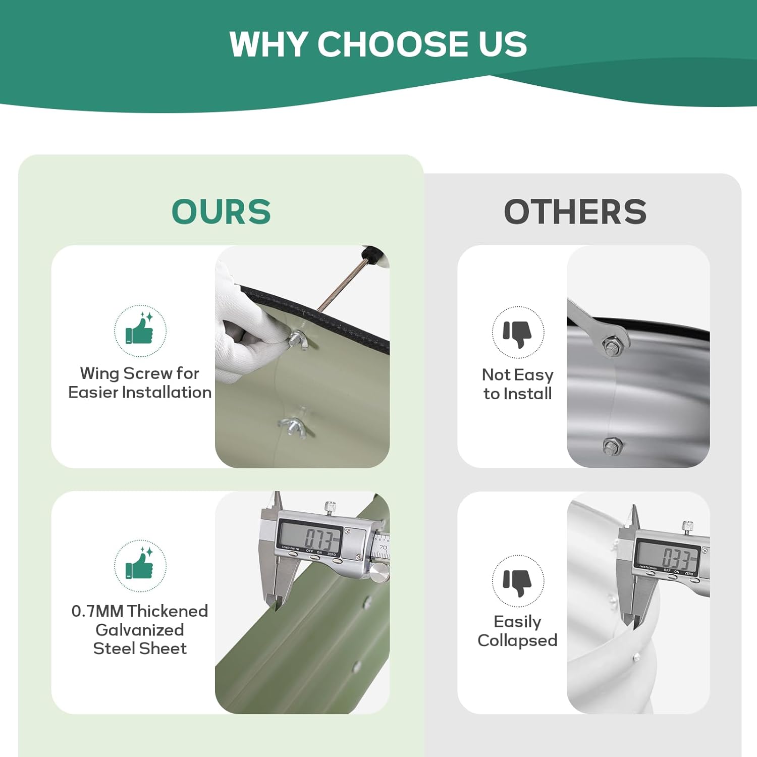 - 【 Durable and Long-lasting 】 BIRDSINYARD outdoor raised garden bed is made from 0.6mm thick galvanized steel,featuring a rust-resistant and corrosion-resistant coating.Garden planter effectively withstands humid weather and harsh conditions, ensuring it won't easily warp or rust with long-term use.