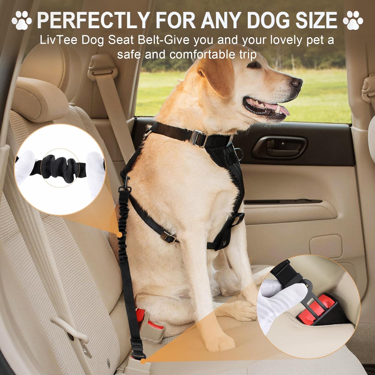 LivTee Dog Seat Belt for Car, Retractable Pet Safety Harness, Adjustable Nylon Dog Seatbelt Leash, Comfortable Dog Accessories for Vehicles (Black-2PCS)