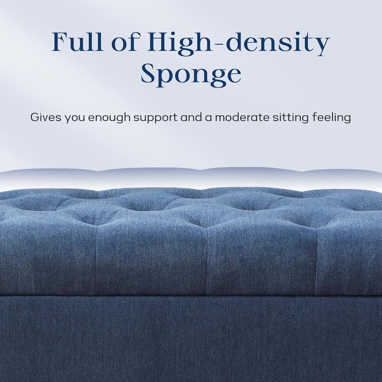 • QUALITY MATERIAL: The end of bed storage bench is made of textured fabric, high density foam and wood frame. The texture of the fabric adds warmth to your home decor. The high-density foam is both flexible and supportive, giving you a comfortable sitting experience that is not too soft and not too hard. The product presents an overall square design with a simple and versatile style that is suitable for a variety of decor