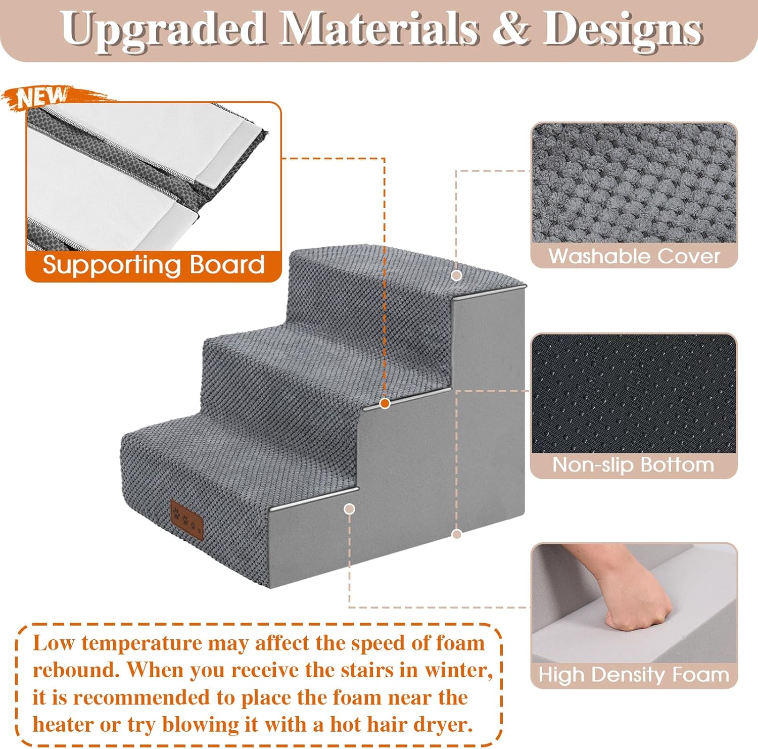 • 【ENHANCED STABILITY】GGIB dog stairs improve a new design with supporting boards, added between the foam stairs and the removable cover. They are fixed inside the cover. Pets can step on more stable and supportive stairs surface, preventing them from slipping when moving quickly.