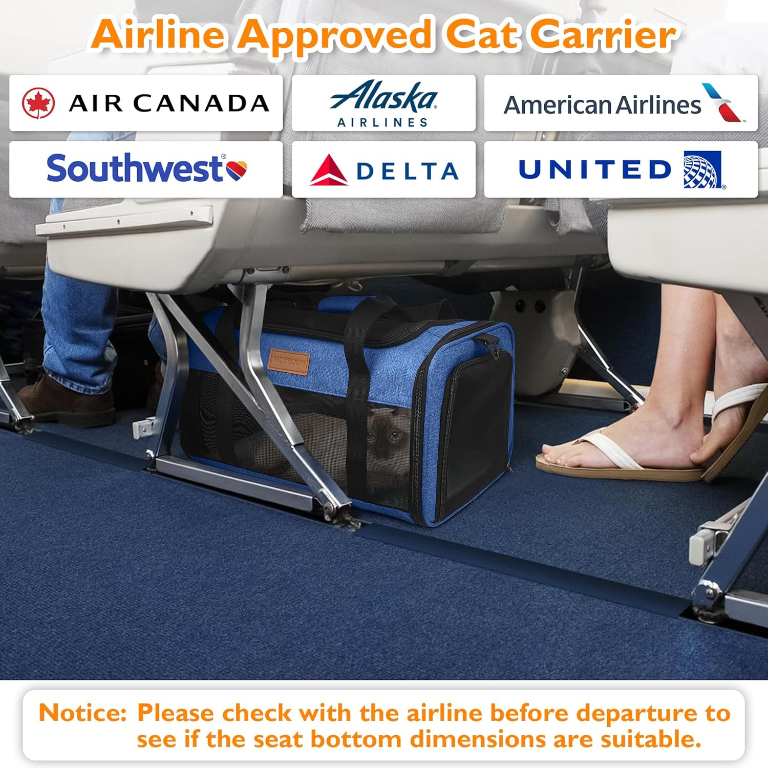 PETUX TSA Approved Pet Carrier in Cabin, 17"x11"x9.5" Soft Cat Carriers for Small Cat up to 12 lb and Puppy up to 10 lb, Top Open Portable Pet Carrier Airline Approved for Travel and Vet Visit (Blue)