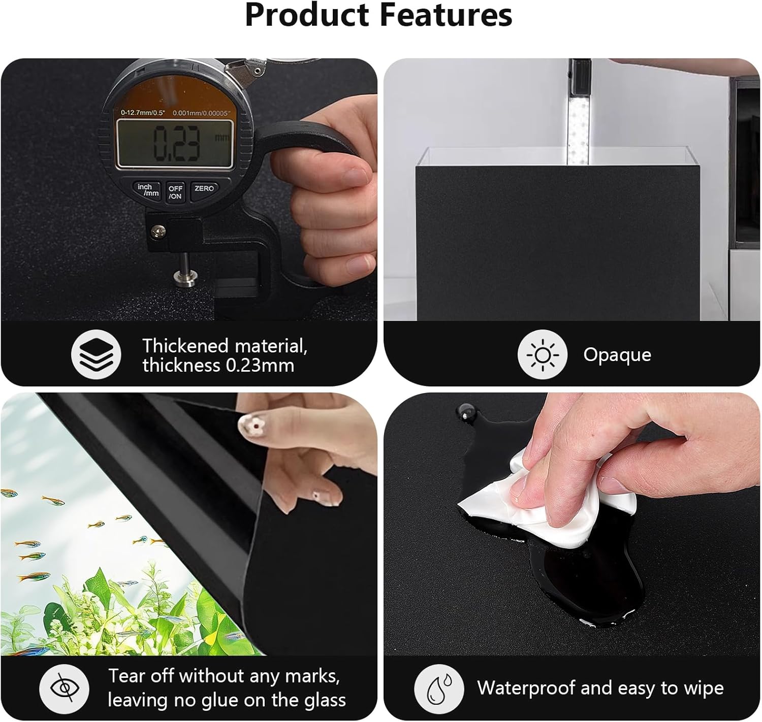 Aquarium Background Paper Decor Fish Tank Backdrop Wallpaper Electrostatic Adhesive, No Glue, Easy to Install, Reusable (23.6“H×78.7”L, Black)