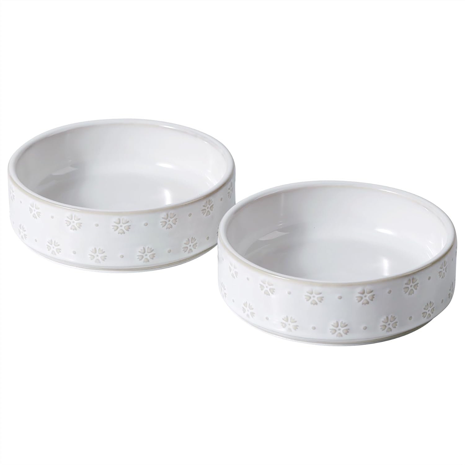 6.1inch Ceramic Set of 2 Dog and Cat Bowls, Food and Water Bowls for Toy Breed Dogs, Kitty, 2pcs Pet Dishes, Cat Feeder(2Dishes, White with Snowflake Pattern)