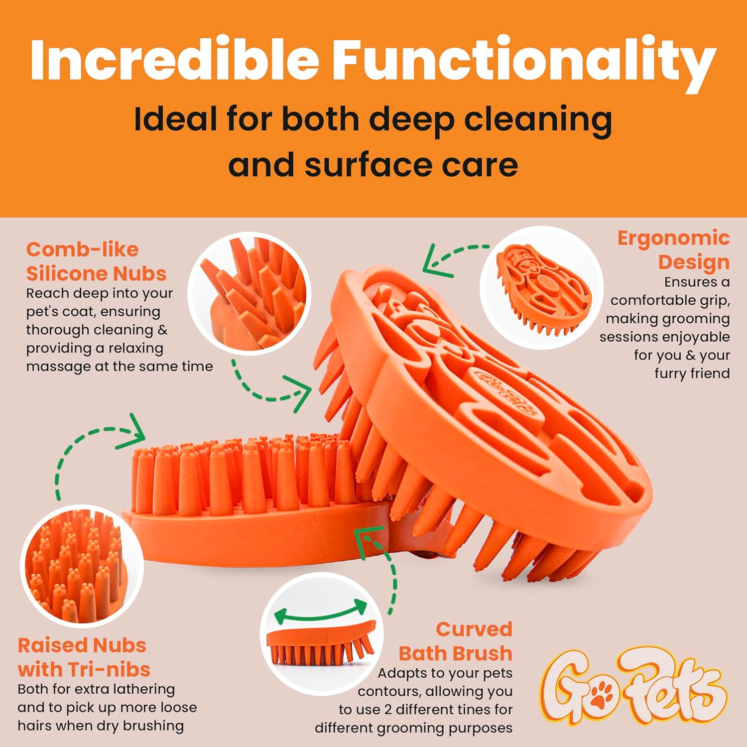 GoPets Curry Comb Bath Brush for Cleaning & Grooming, Silicone Shampoo Scrubber for Shedding & Massage, Rubber Dog Wash & Grooming Brush, Pet Bath Supplies for Long & Short Hair Dogs & Cats