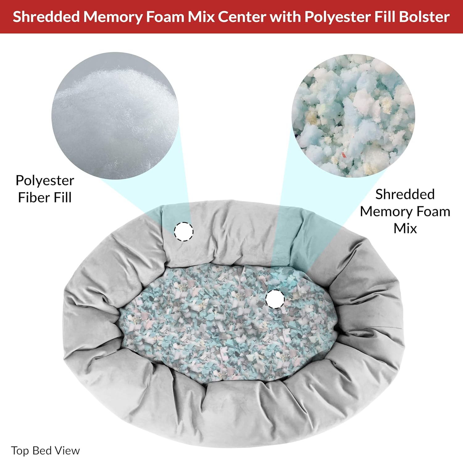 • [Ultimate Comfort with Shredded Memory Foam] Crafted with premium shredded memory foam, our dog bed conforms to your pet’s shape, easing joint pressure and promoting restorative sleep. The round donut shape offers a cozy, inviting space, ensuring every nap is blissfully comfortable and supports natural sleep positions with our dog beds large sized dog. This shredded memory foam center cushion with polyester fiber fill bolster dog bed gives them the comfort they’ll never want to leave!