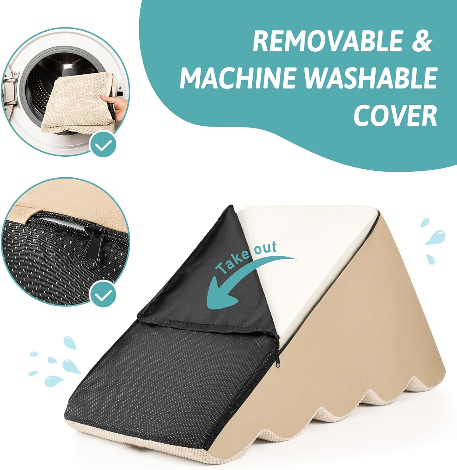 - LEAKPROOF & EASY TO USE: The climbing surface of the dog stairs is made of leak-proof material, so you donβt have to worry about your dog peeing on the stairs. The bottom is made of non-slip nylon to minimize the movement of the stairs. The two sides of the stairs are made of wear-resistant cotton and linen for dogs to sharpen their claws, and there is a convenient handle at the back for easy carrying