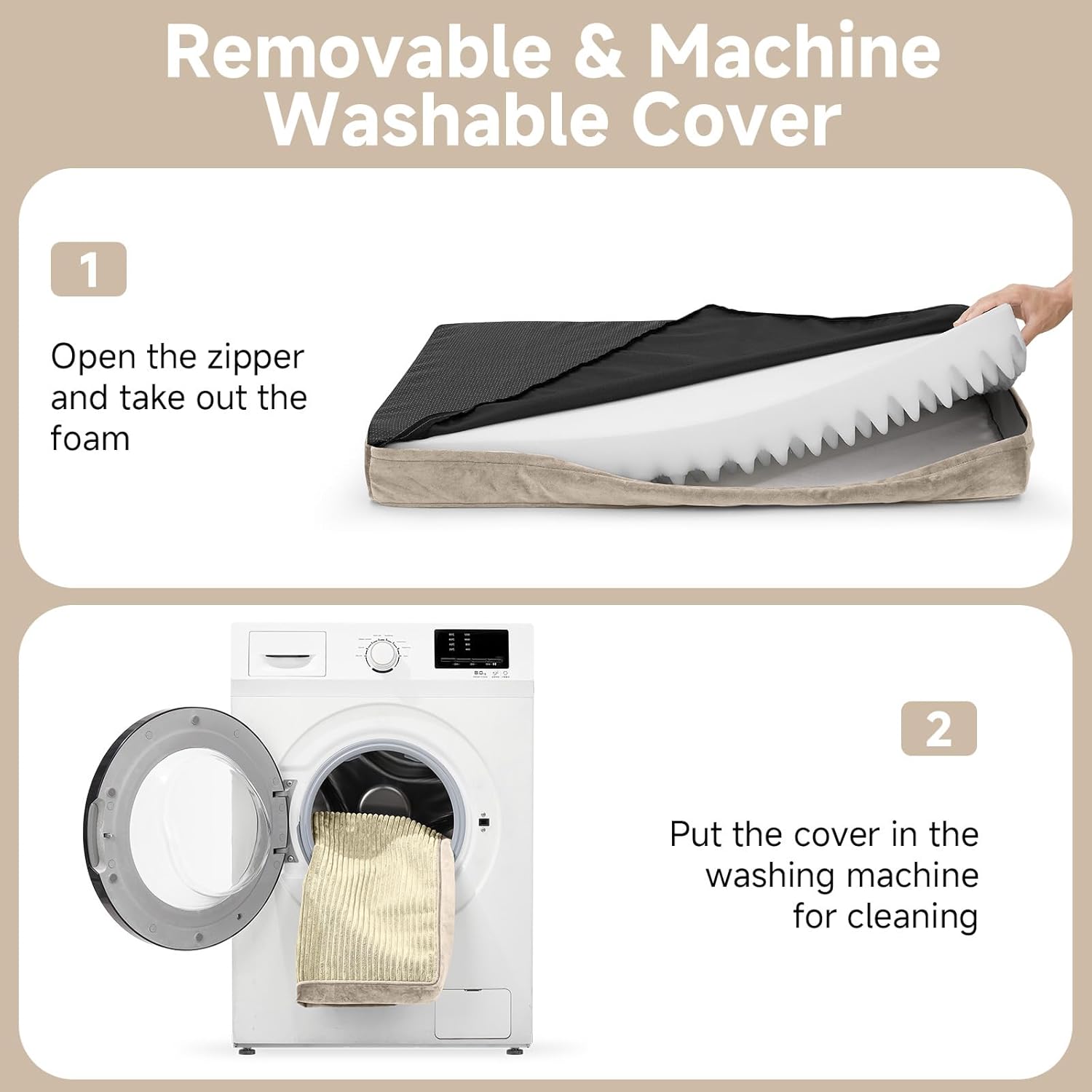 OhGeni Orthopedic Waterproof & Machine Washable Dog Bed for Medium Large Pets, Suitable for Crates, Cat Mat with 25D Egg Crate Foam, Removable Cover & Invisible Zipper, 35 Inches(Khaki)