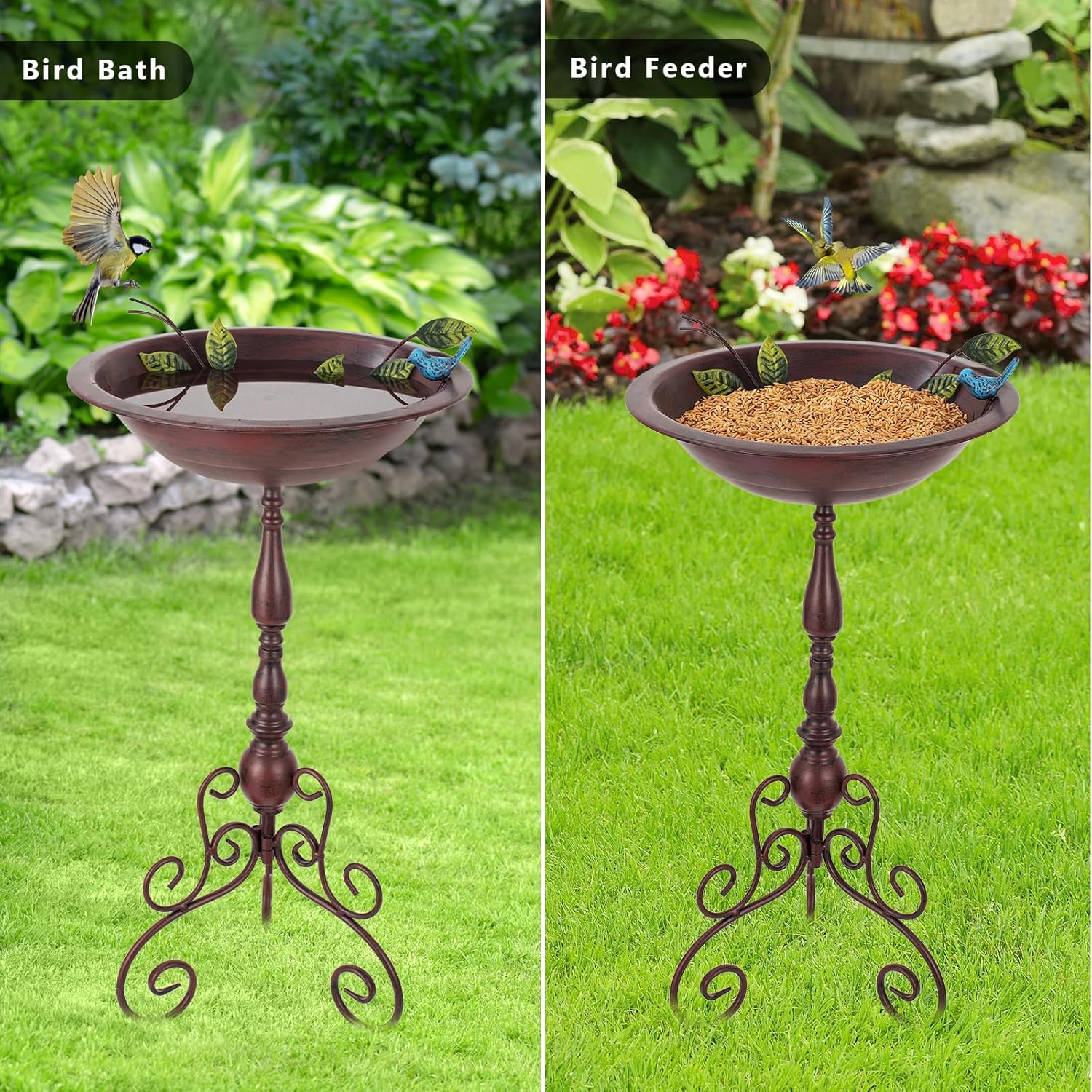- Optional Usages: The copper bird bath is multi-purpose. It can be used as bird bath or bird feeder. When you fill the bird bath bowl with enough water, it can be a standing deep bird bath. When you want to use it as a bird feeder, just swap the water for seed or grain