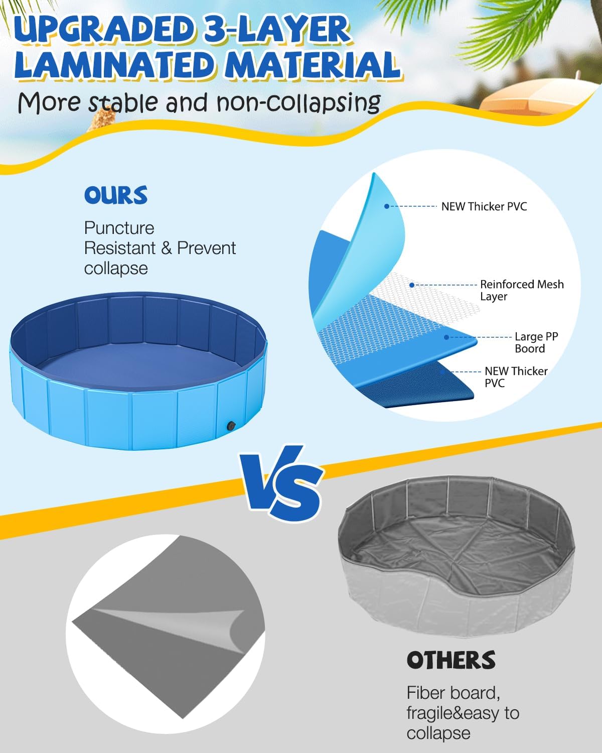 YSJILIDE Foldable Dog Pool, Portable PVC Dog Pet Swimming Pool, Collapsible Plastic Dog Bath for for Large Medium Small Dogs & Kids (S-32"x 8" Blue)