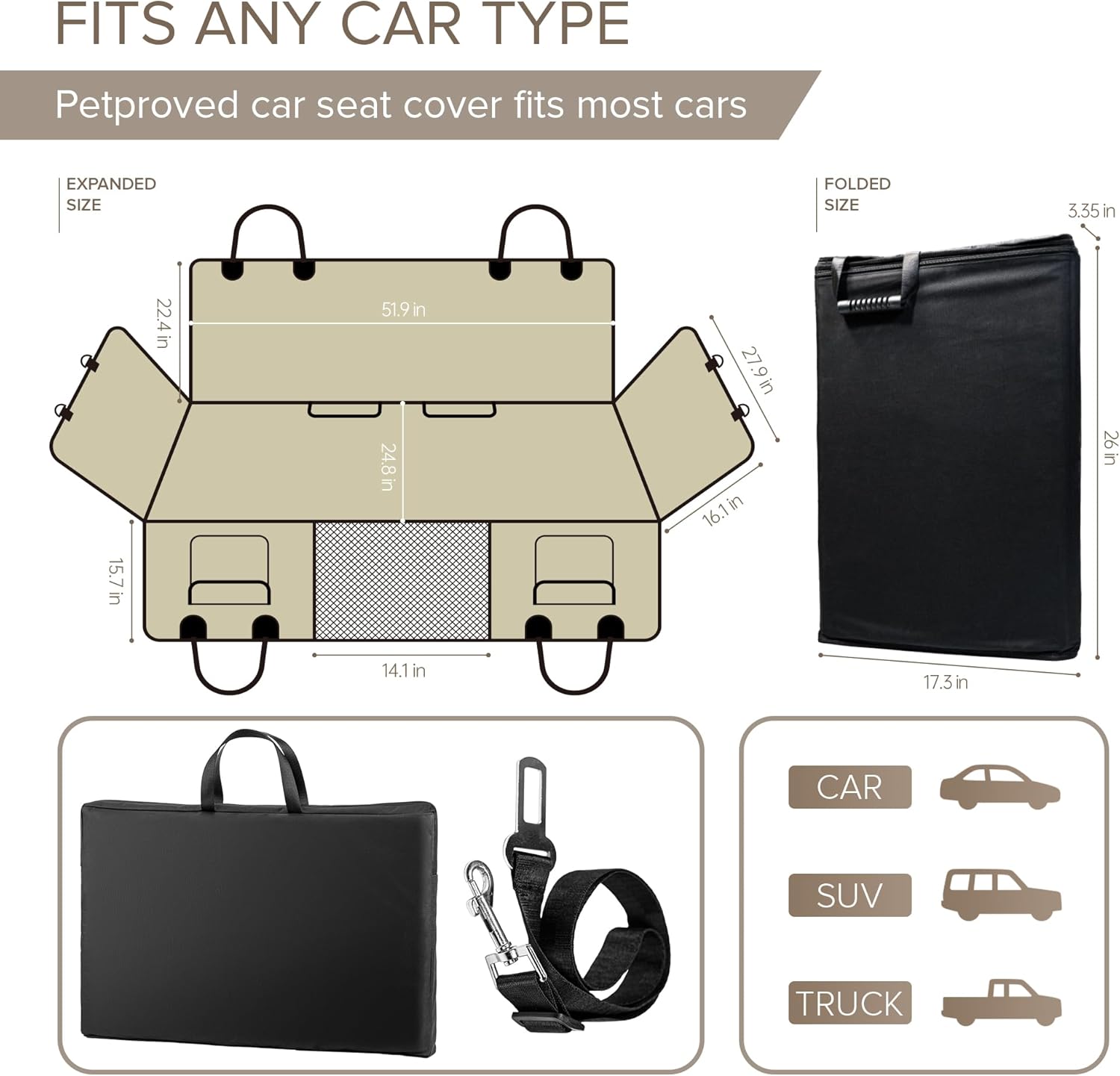 • FIT FOR ALL VEHICLE TYPES - Back seat protector for dog sized 63x52 inches that designed to effortlessly accommodate a wide range of vehicles. Whether family car, SUV, or pickup truck, this large dog car seat will fit well and provide the protection your vehicle needs. Universal rear seat cover is foldable, ensures quality and convenience, back seat extender for dogs keep car clean and secure. This pet car seat cover is perfect dog accessories and dog car seat for large dogs for all your journey